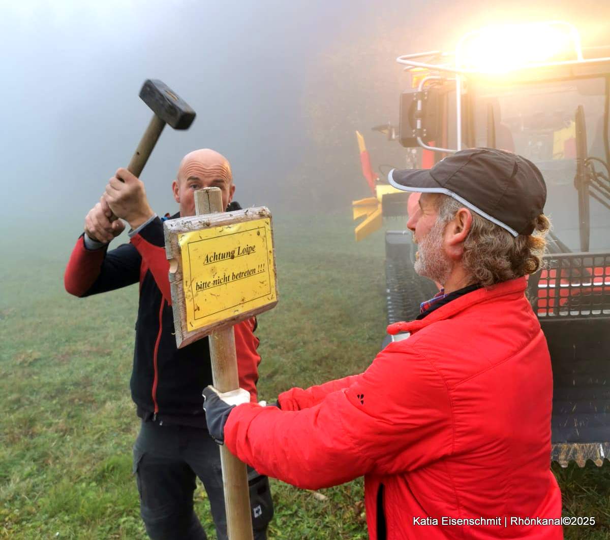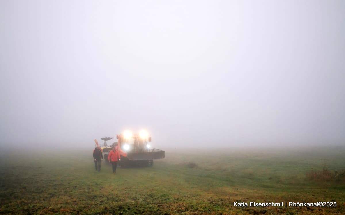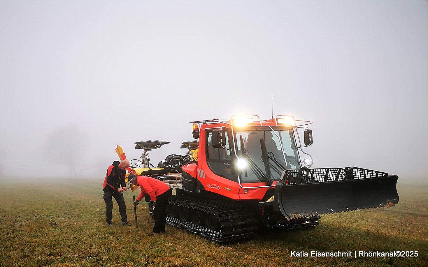 Gemeinsam waren sie mit der Pistenraupe unterwegs, um 09zu setzen. Wer das schon einmal gesehen hat, weiß: Das hat etwas von Rhöner Orientierungslauf auf Profi-Niveau. Man sieht kaum die Hand vor Augen, aber jeder Pfosten steht am Ende da, wo er hingehört.