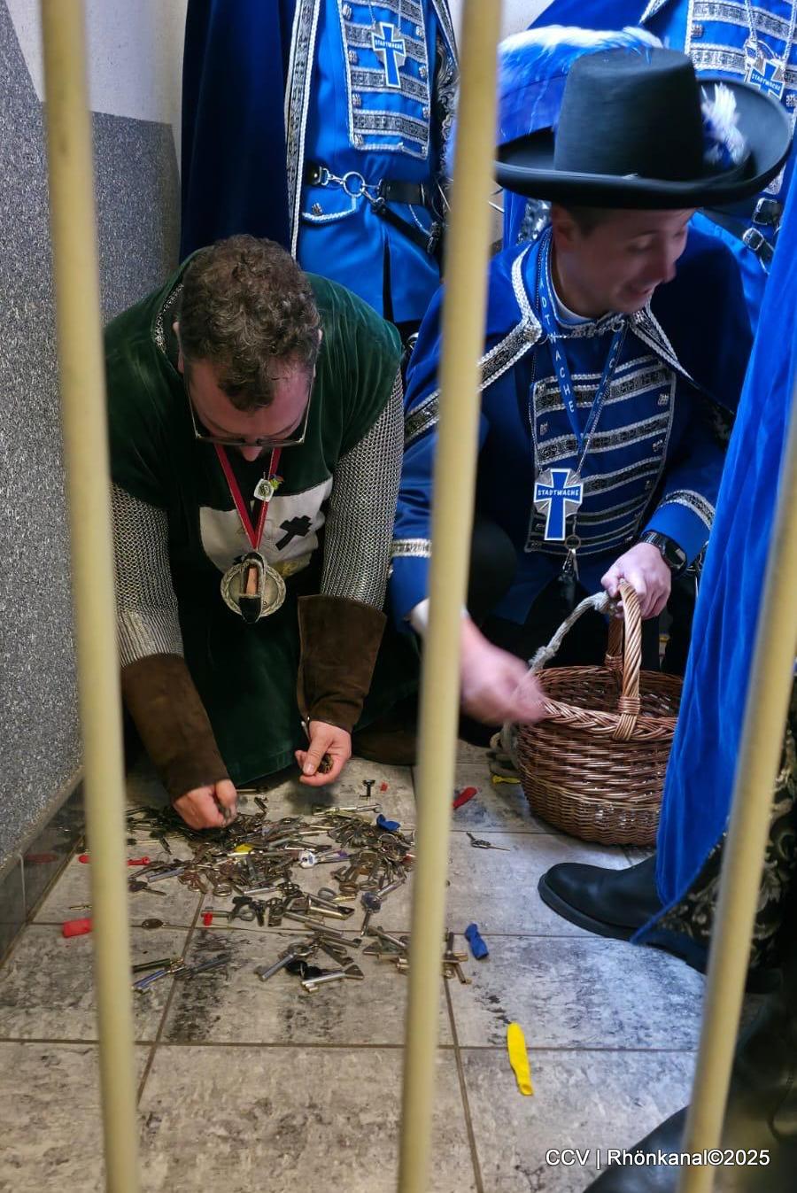 Anschließend mussten die Stadtwache und die Ritter aus hunderten von Schlüsseln den Richtigen für das Büro des Bürgermeisters erst einmal finden. Eine närrische Herausforderung, die dem CCV alles an Geschick und auch einer Prise Glück abverlangte.