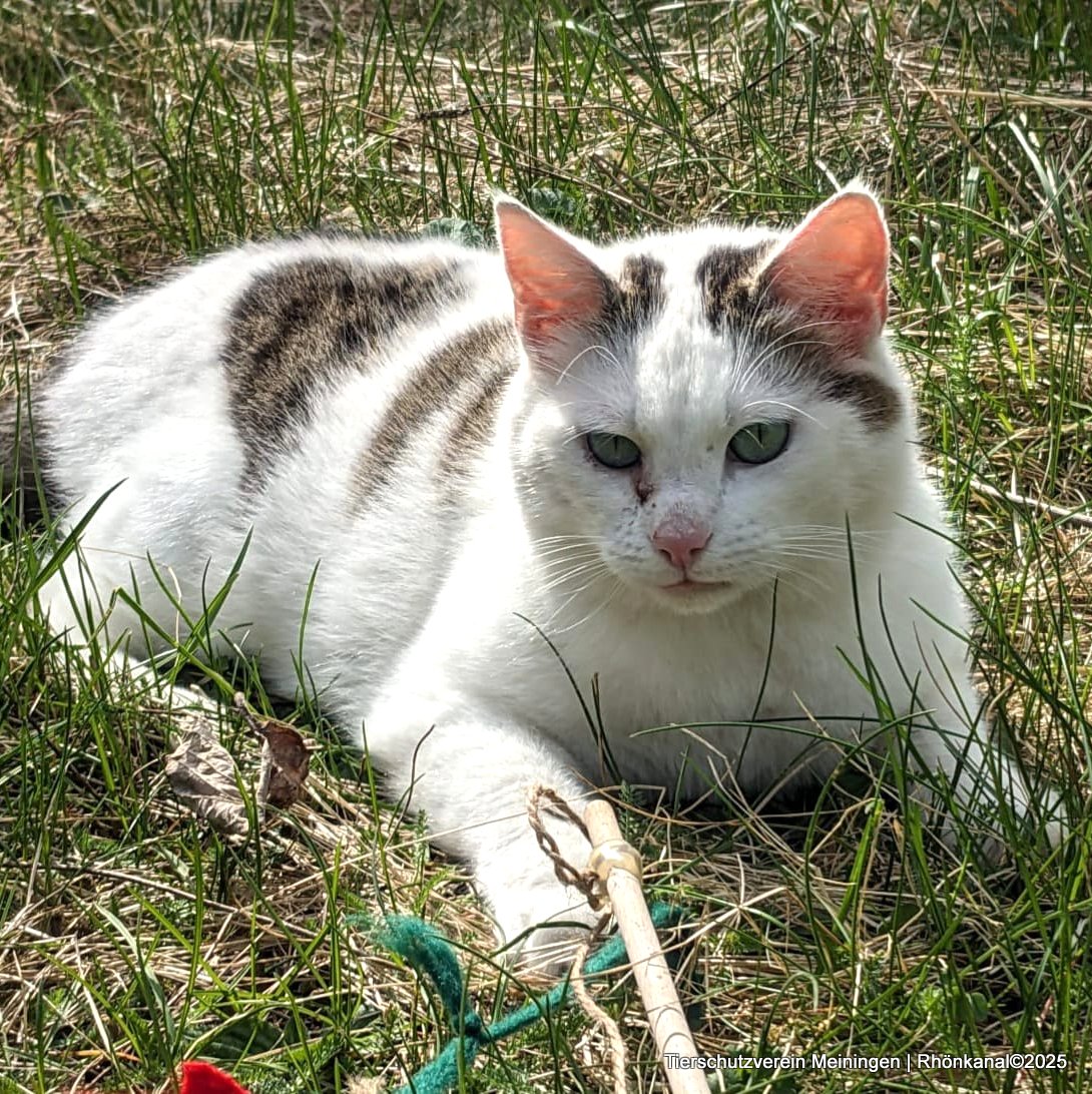 Seit längerer lebt Billy nun bereits im Tierheim. Der bildhübsche vier bis fünf Jahre alte Kater mit dem weiß-grau-getupften Fell und den strahlend grünen Augen kam im April 2023 als Fundkater in die Meininger Tierherberge, nachdem er sich einige Zeit mehr schlecht als recht und in einem desolaten Allgemeinzustand am Meininger Bahnhof durchgeschlagen hatte.