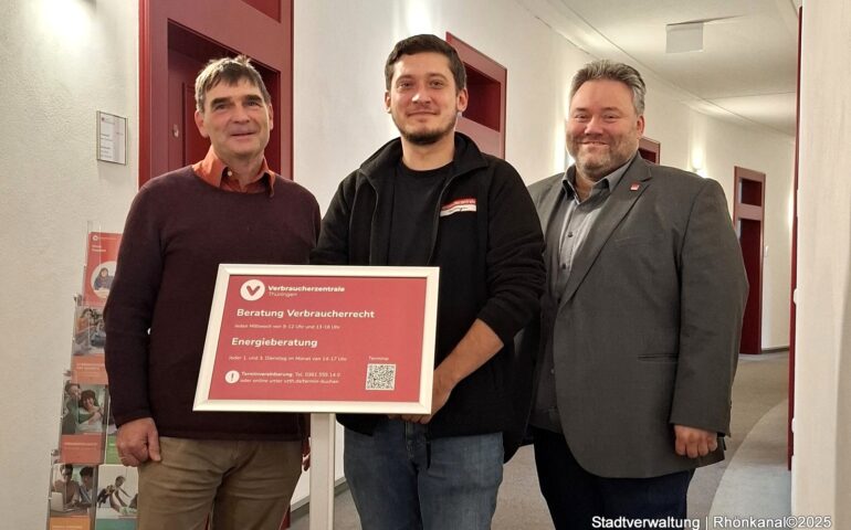 Die Beratung für Verbraucher:innen findet jeden Mittwoch von 9 bis 12 und 13 bis 16 Uhr in der Stadtverwaltung Meiningen im zweiten Obergeschoss, Raum 213, statt.