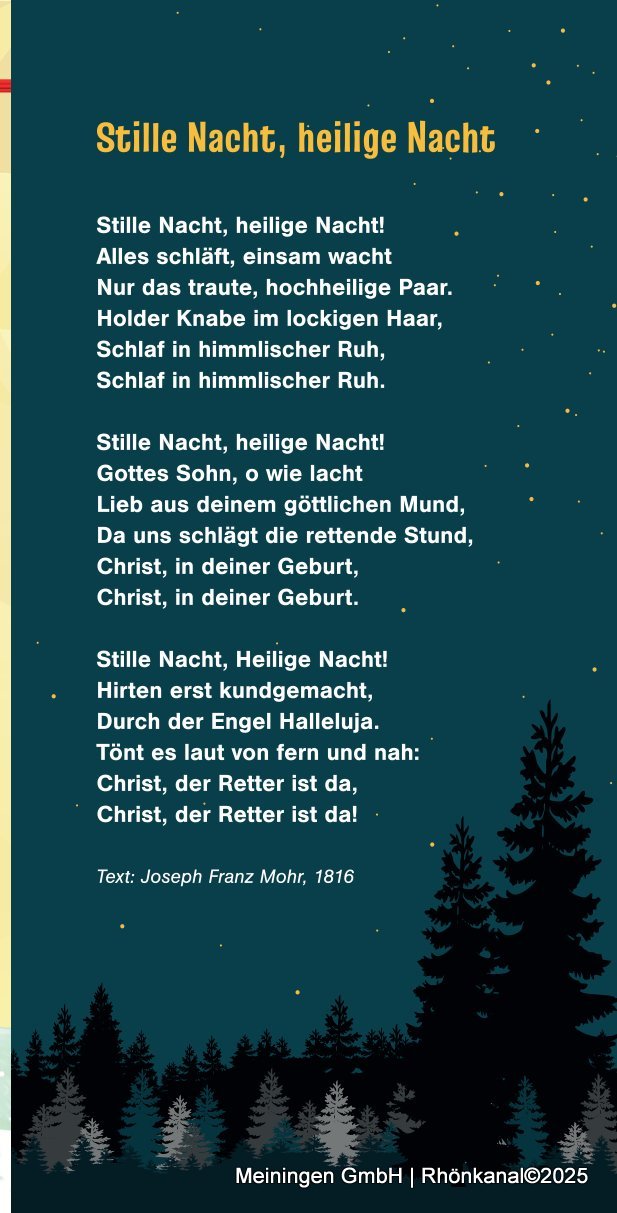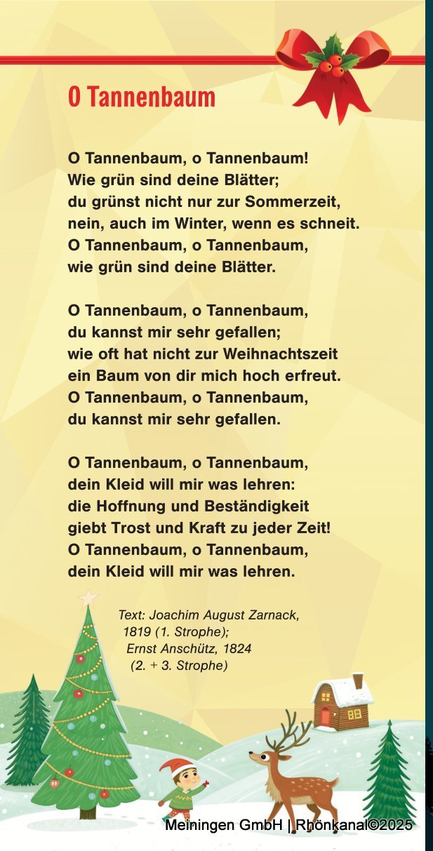 Von „Leise rieselt der Schnee“ über „O Tannenbaum“ bis zu „Sind die Lichter angezündet“ – sieben bekannte Lieder laden zum Mitsingen, Innehalten und Erinnern ein.