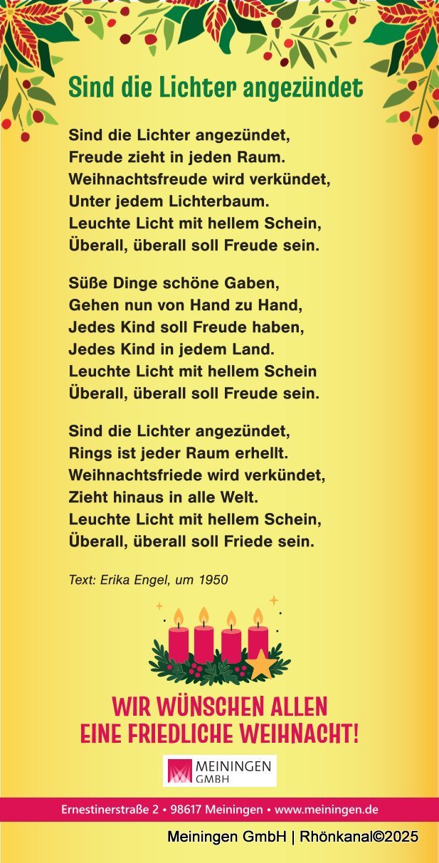 Wenn sich die Weihnachtszeit über Meiningen legt und vertraute Melodien durch die Luft klingen, entsteht ein besonderer Moment der Gemeinschaft: Beim großen Meininger Weihnachtssingen am Samstag, den 20. Dezember 2025, sollen 1.000 Stimmen zusammenkommen, um die schönsten Weihnachtslieder gemeinsam erklingen zu lassen.