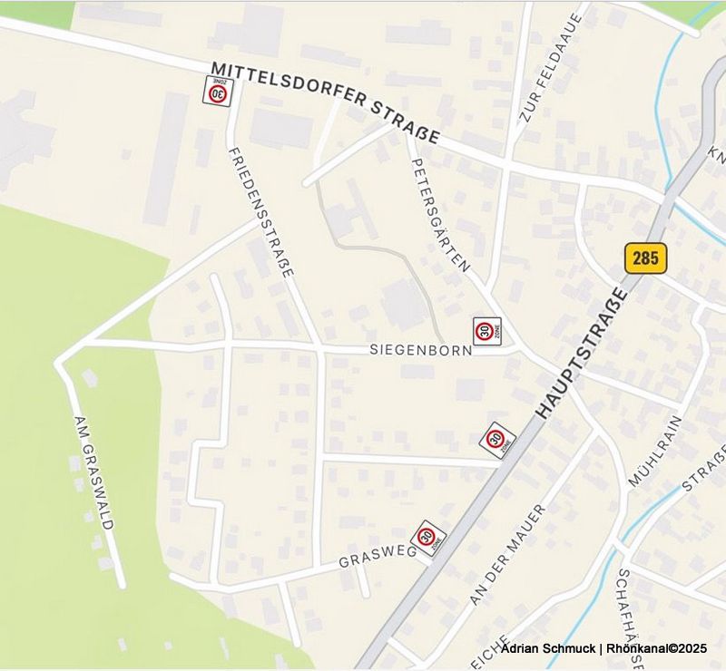 In Kaltensundheim ist die neue 30-km/h-Zone, die bereits seit einiger Zeit im Gespräch war, nun offiziell eingerichtet worden. Sie umfasst nahezu das gesamte Obertor (Grasweg, Straße der Befreiung, Kreuzung Petersgärten/Siegenborn sowie Friedenstraße).