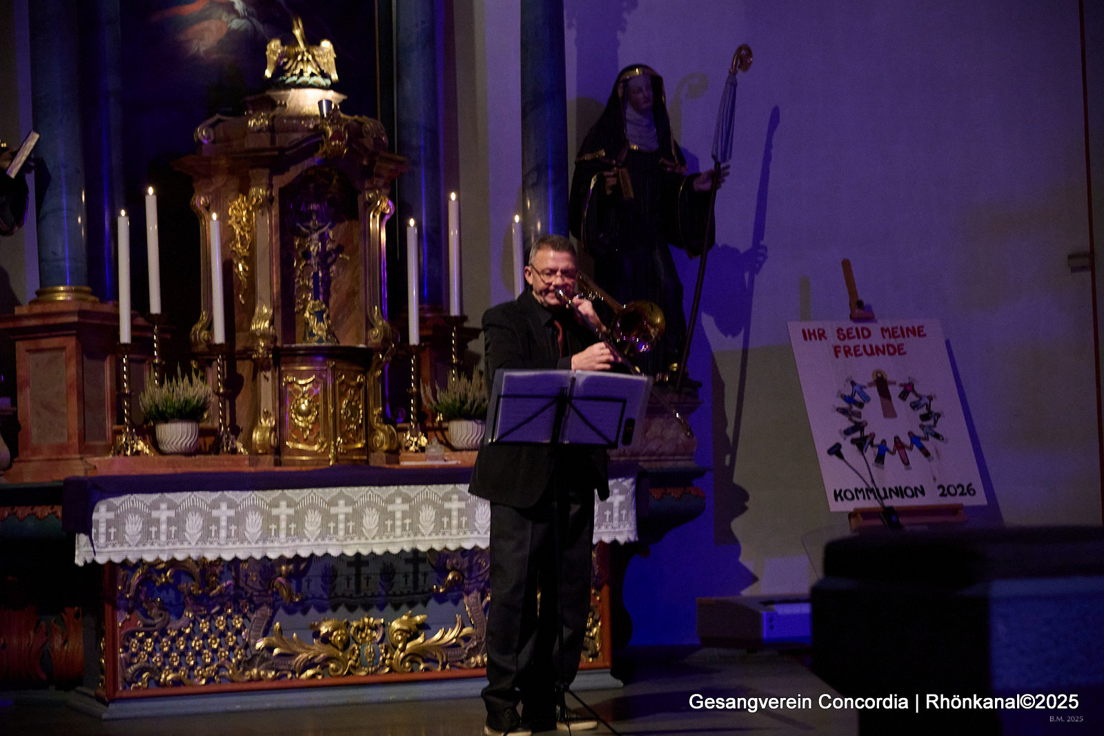 Der Abend schloss mit einfühlsamen Weihnachtsliedern von Viktor Basiuk auf der Posaune. Die Sängerinnen und Sänger wurden in wunderbarer Weise durch eine stimmige Orgelbegleitung von Tobias Vey unterstützt.