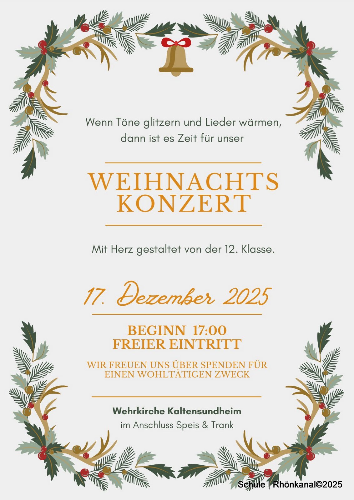 Das Staatliche Thüringische Rhön-Gymnasium Kaltensundheim lädt am 17. Dezember 2025 um 17 Uhr herzlich zu einem besonderen Adventskonzert in der ortsansässigen Wehrkirche ein.