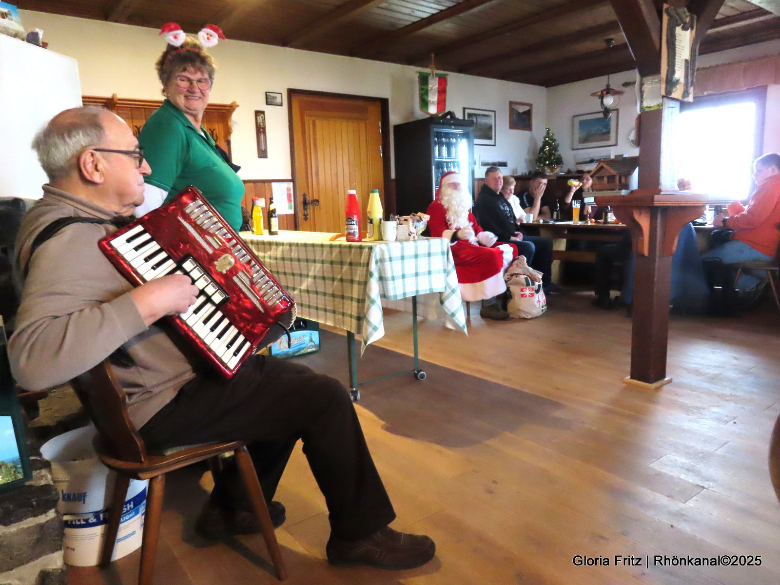 Zuerst wurden ein paar Weihnachtslieder gesungen, das ganze begleitete Senior-Chef Karl Ludwig Blum auf seinem Akkordeon. Alle sangen fröhlich mit.