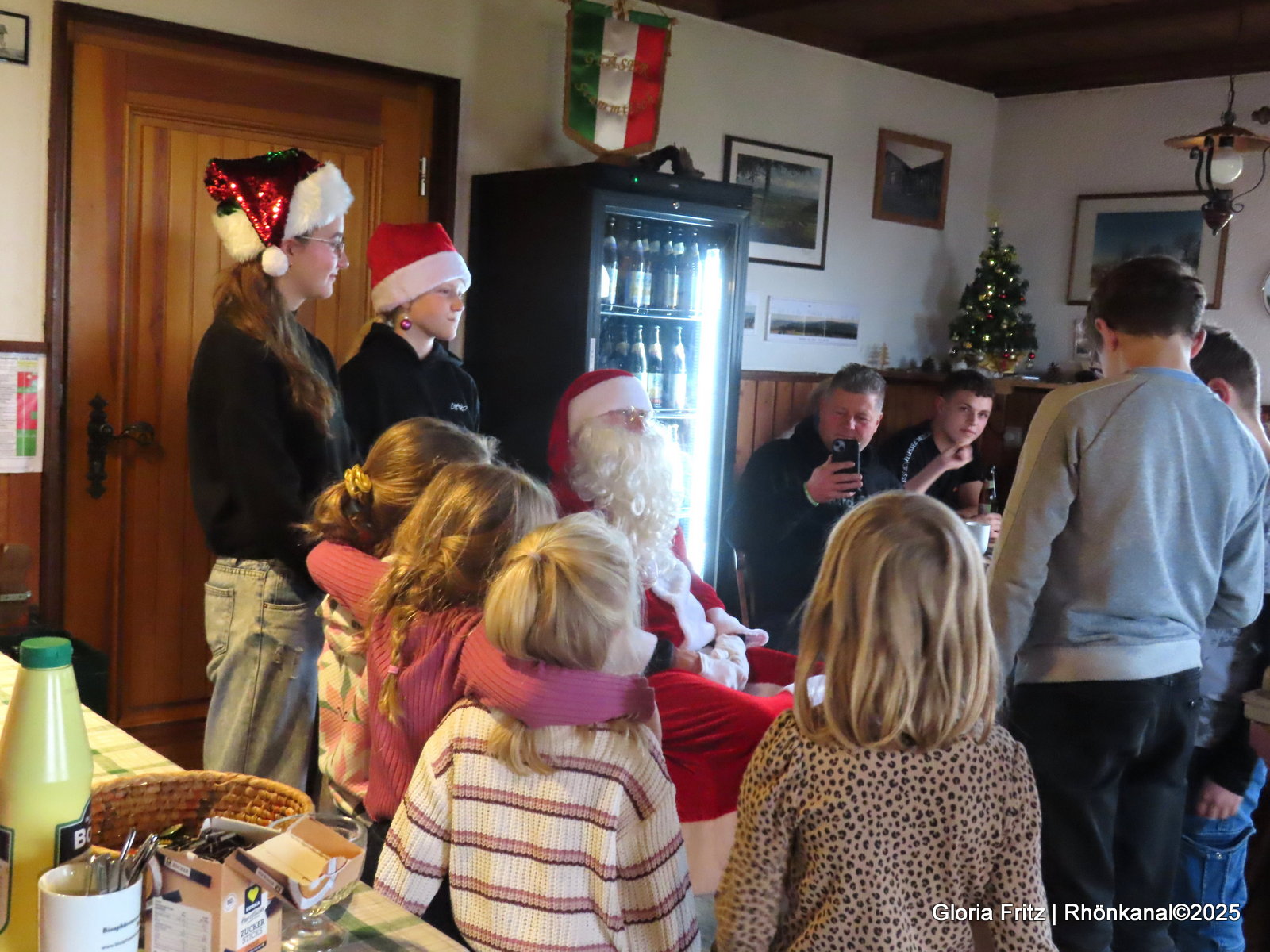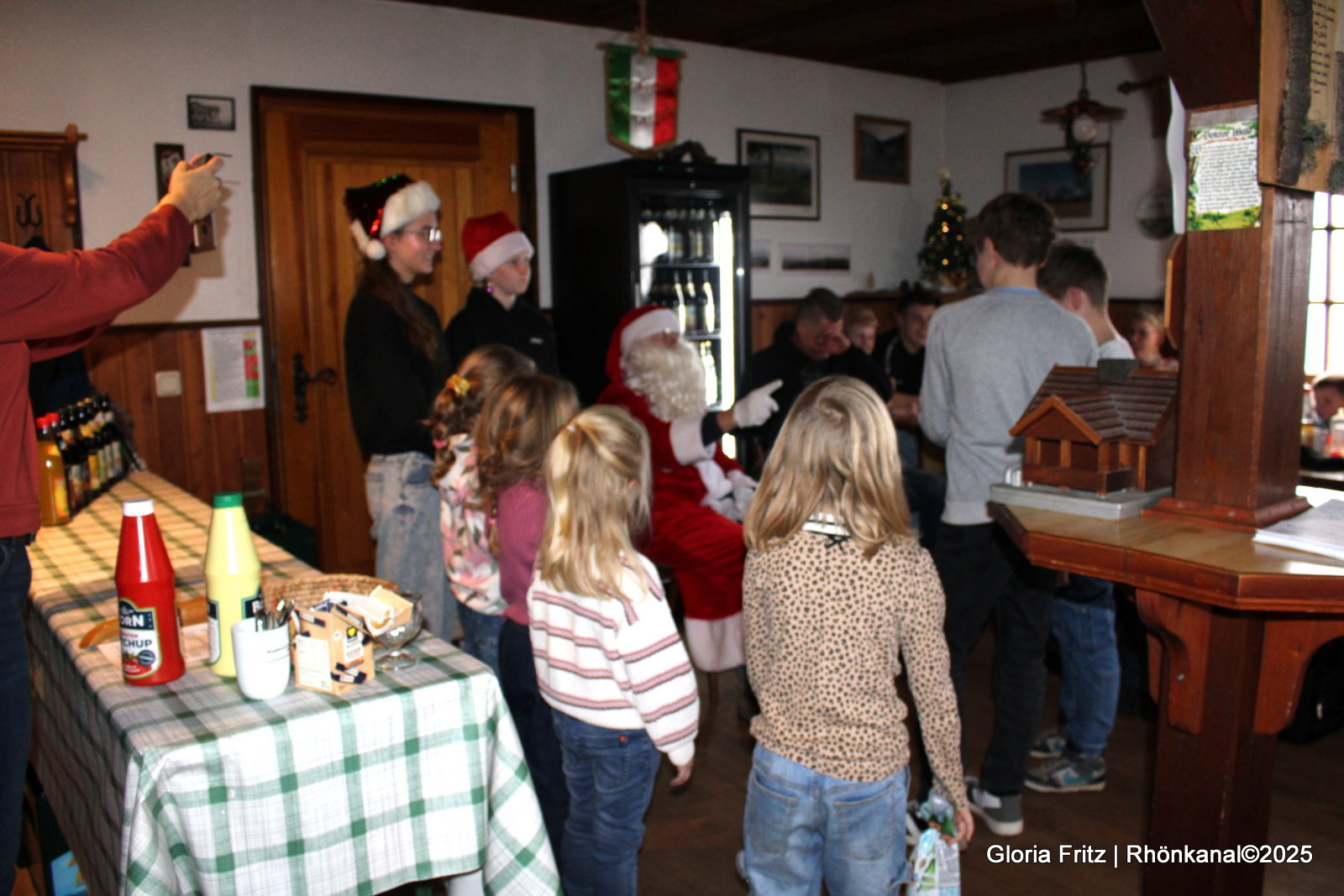 Drinnen in der Gläserhütte begrüßte Nikolaus alle mit den Worten „Ich komme mit meinen zwei Elfen die mir helfen“. Ganz stimmungsvoll wurde Nikolaus begrüßt.