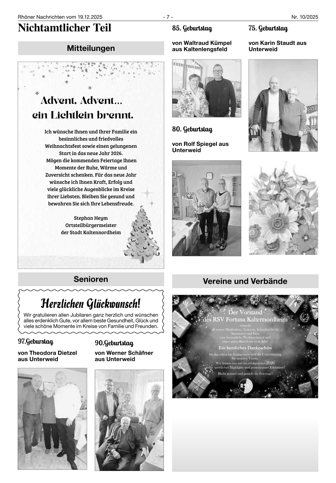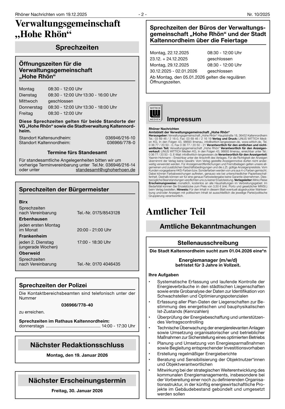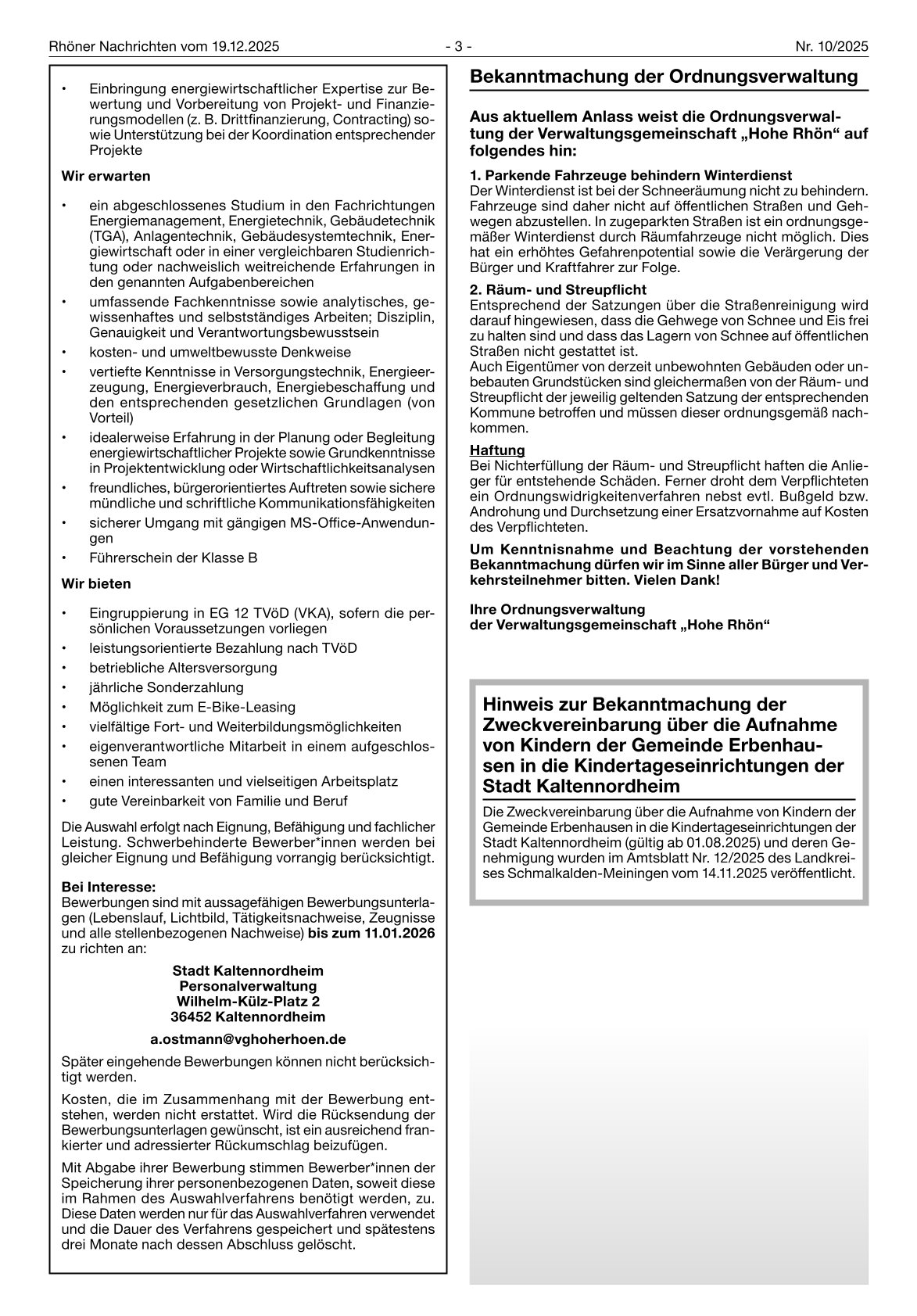 Amtsblatt der VG Hohe Rhön – Dezember Ausgabe 2025