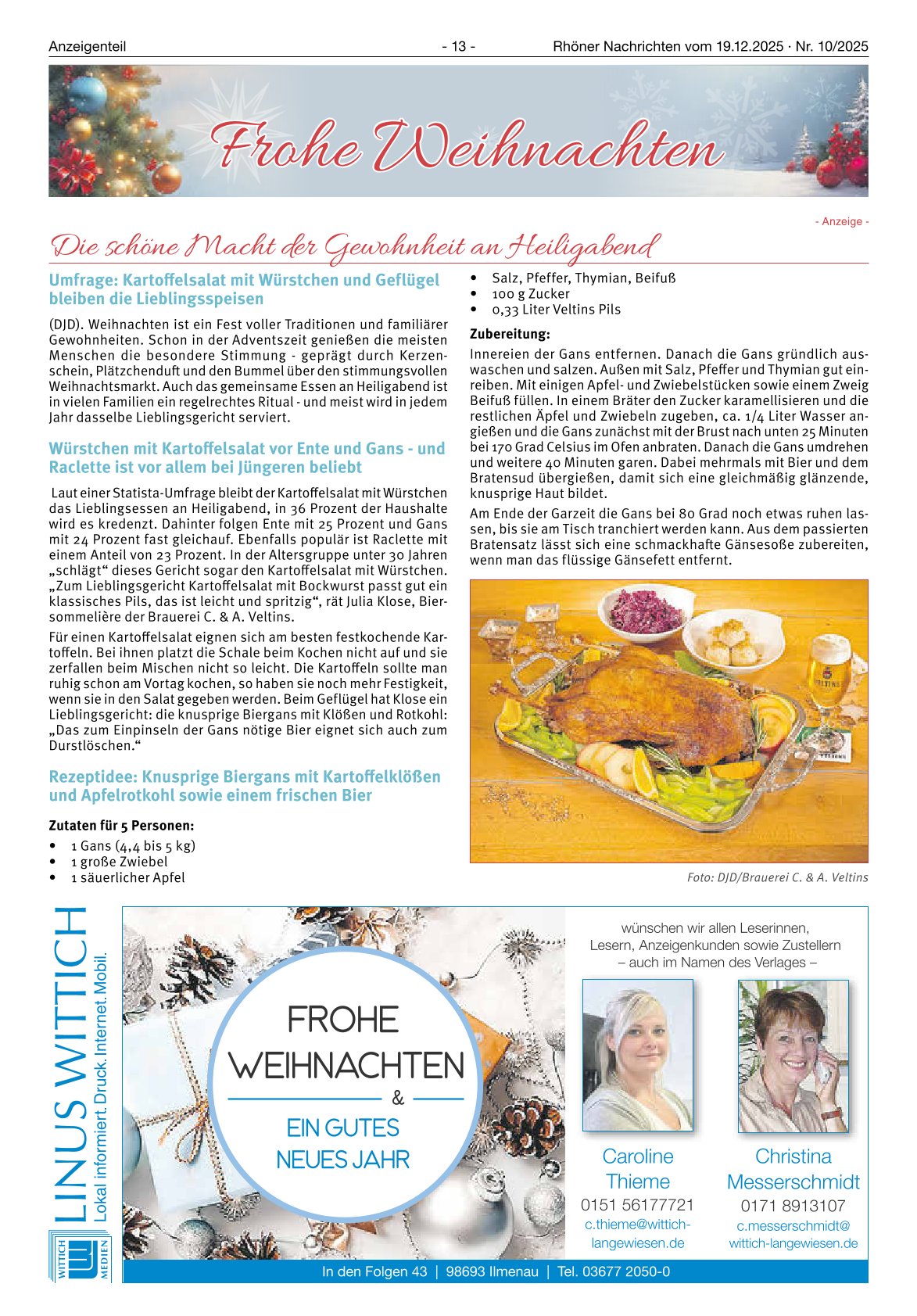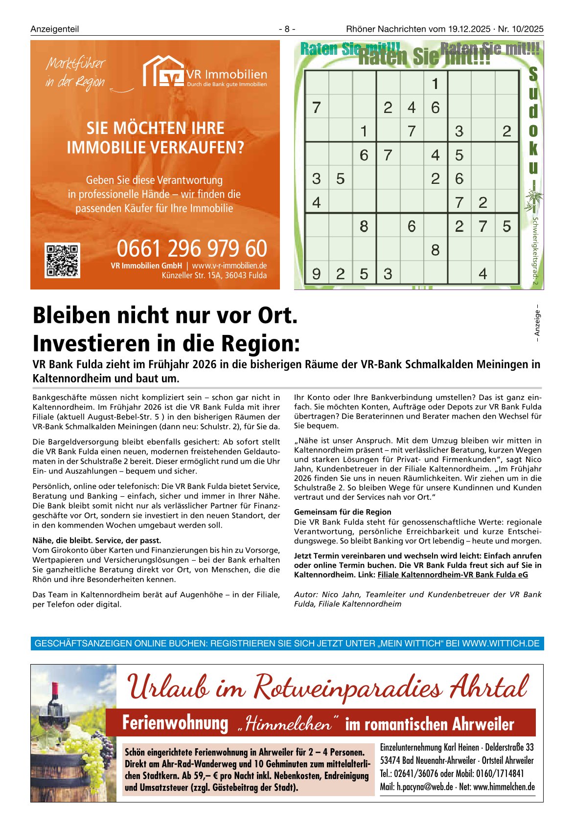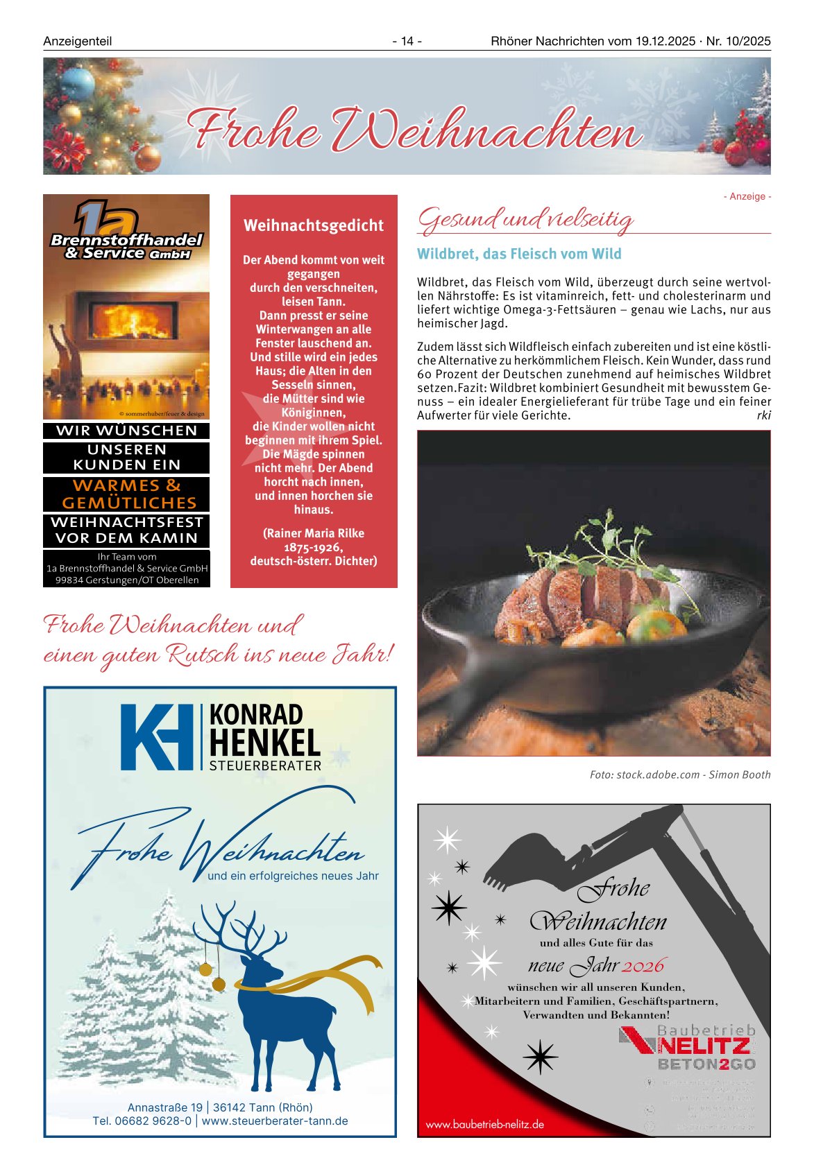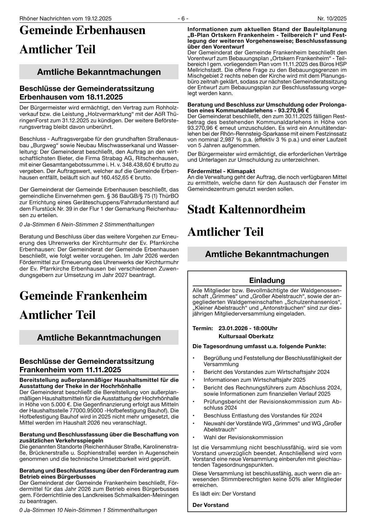 Amtsblatt der VG Hohe Rhön – Dezember Ausgabe 2025