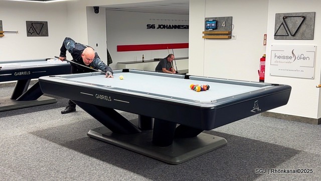 Die Partie startete im Vereinsheim in Johannesberg ausgeglichen. In der Hinrunde lieferten sich die Teams packende Duelle, die auf ein Kopf-an-Kopf-Rennen hindeuteten: Rüdiger Barth legte im 14.1 endlos mit einer beeindruckenden Leistung vor und beendete sein Match mit 100 Bällen in nur 15 Aufnahmen (Höchstserie 25) erfolgreich.