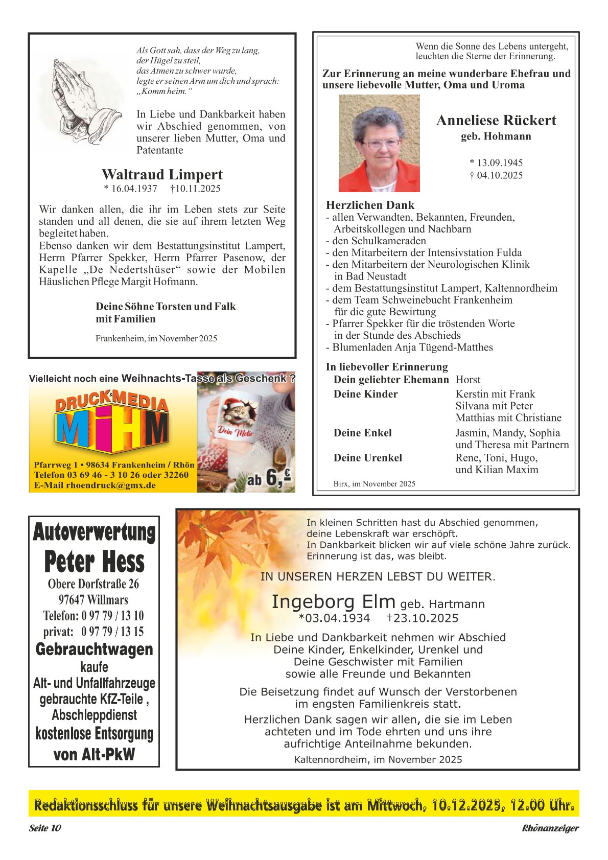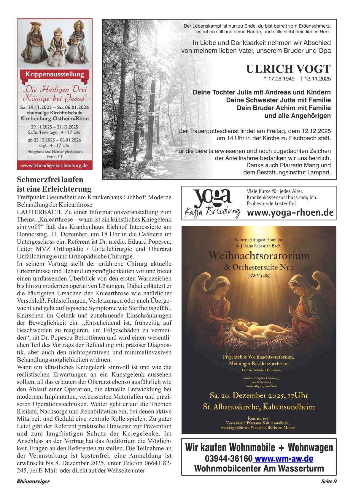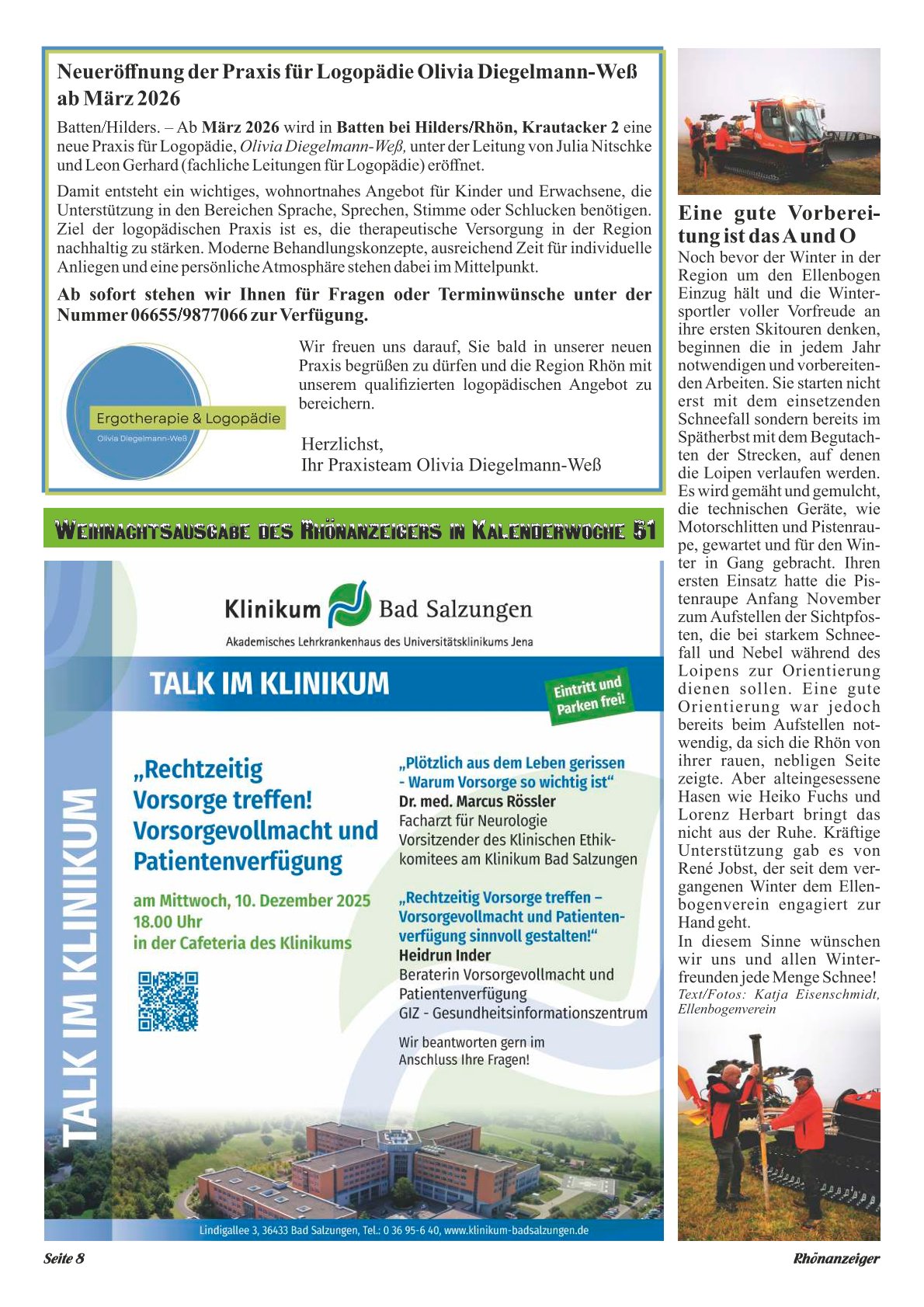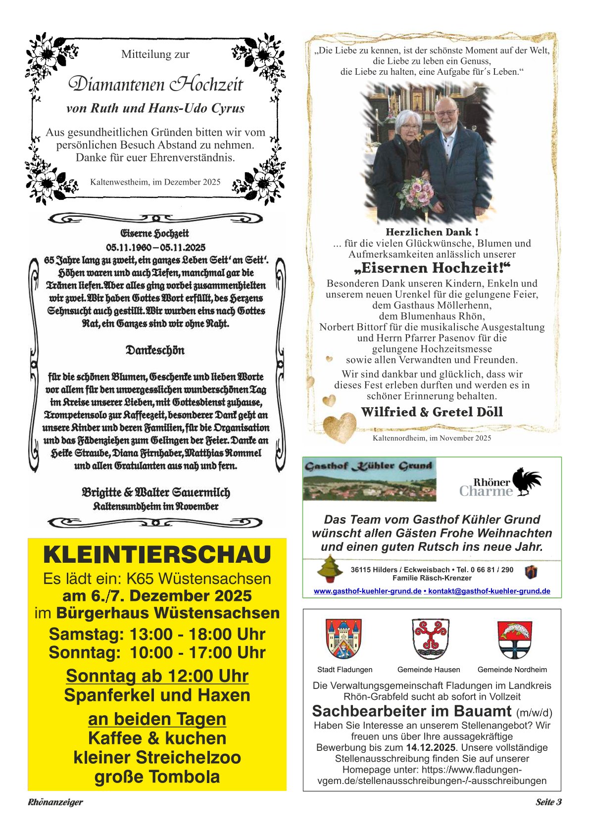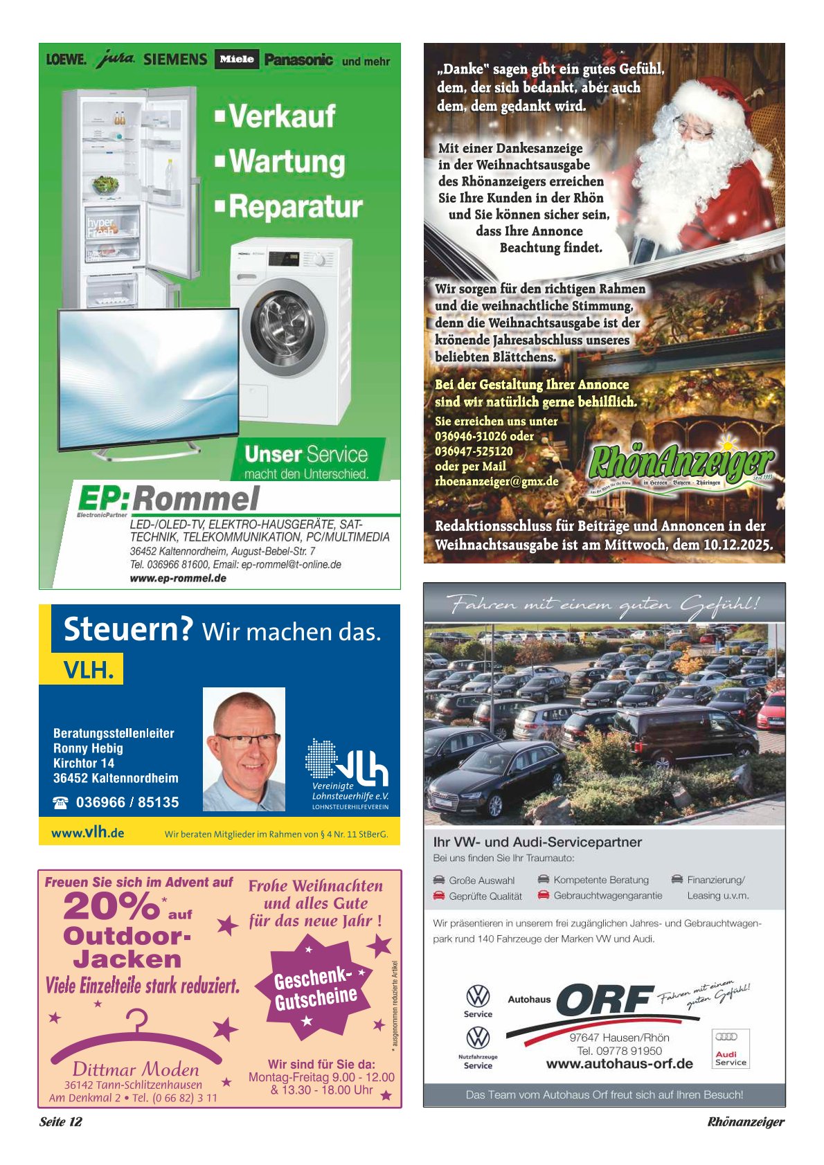 Der neue RhönAnzeiger ist da: Dezember-Ausgabe 2025 Posted by Redaktion6. Dezember 2025 Der beliebte RhönAnzeiger aus der Region für Euch! Informiert Euch über Gewerbebetriebe, Veranstaltungen und privaten Anzeigen. Perfekt anschauen mit der kostenlosen Rhönkanal App!
