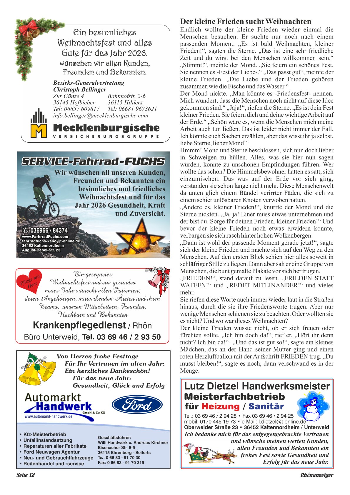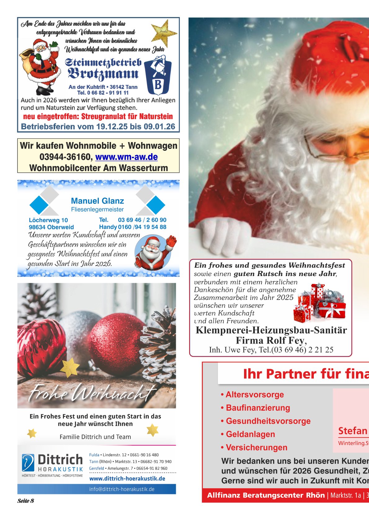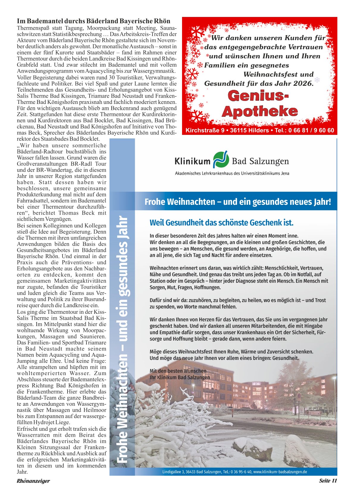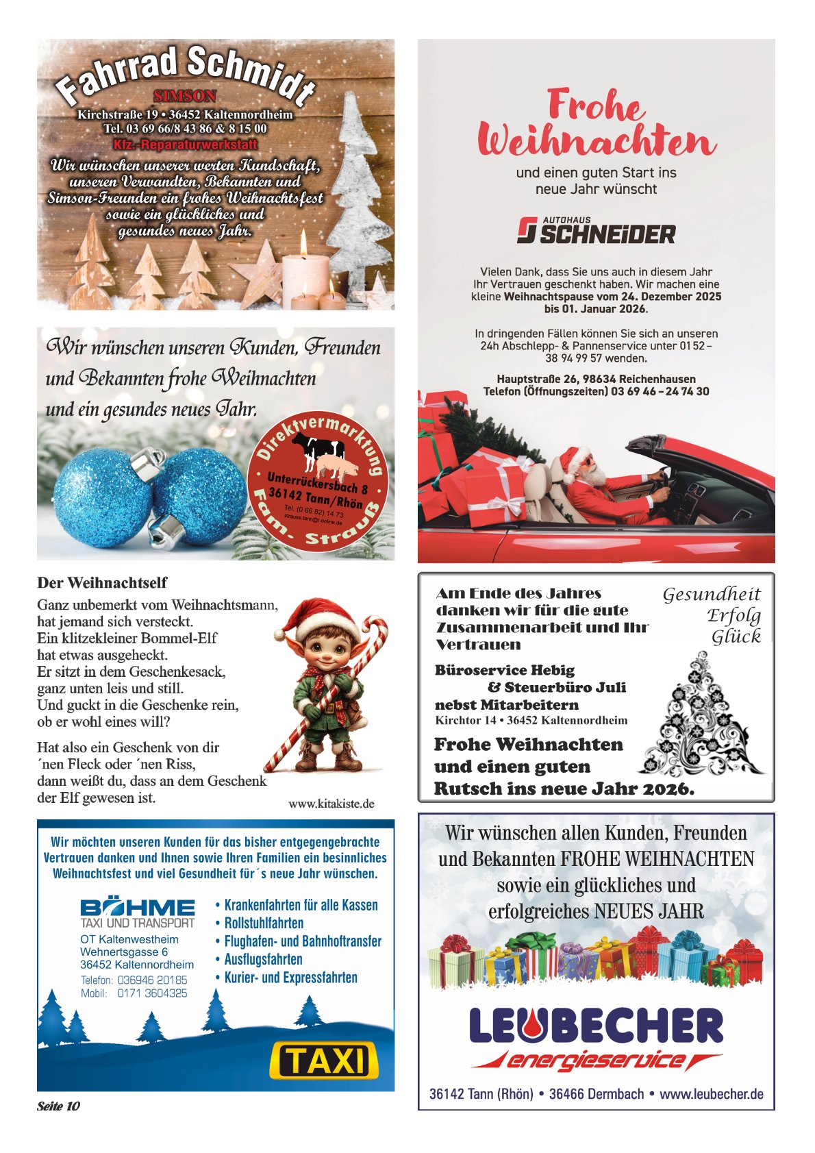 Der neue RhönAnzeiger ist da: Weihnachts-Ausgabe 2025 Posted by Redaktion15. Dezember 2025 Der beliebte RhönAnzeiger aus der Region für Euch! Informiert Euch über Gewerbebetriebe, Veranstaltungen und privaten Anzeigen. Perfekt anschauen mit der kostenlosen Rhönkanal App!