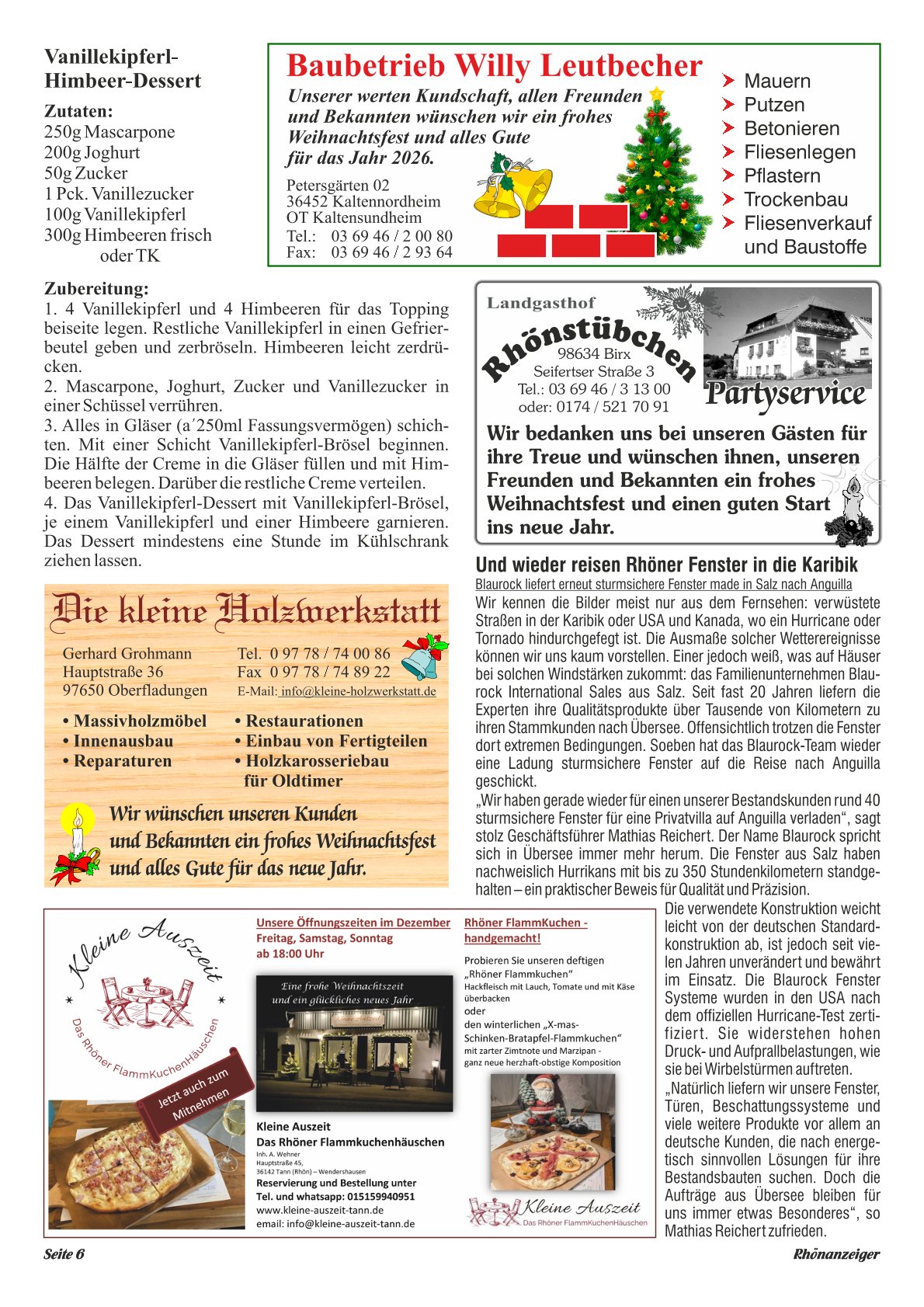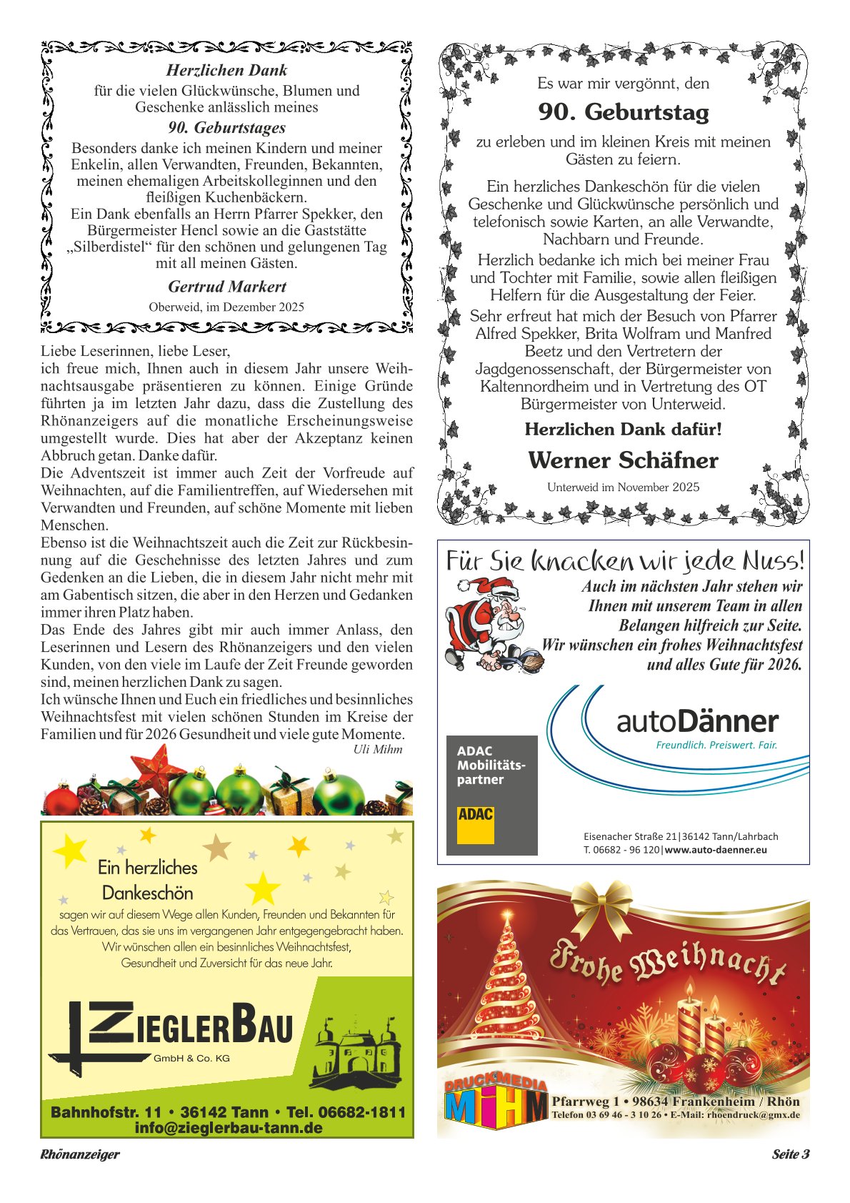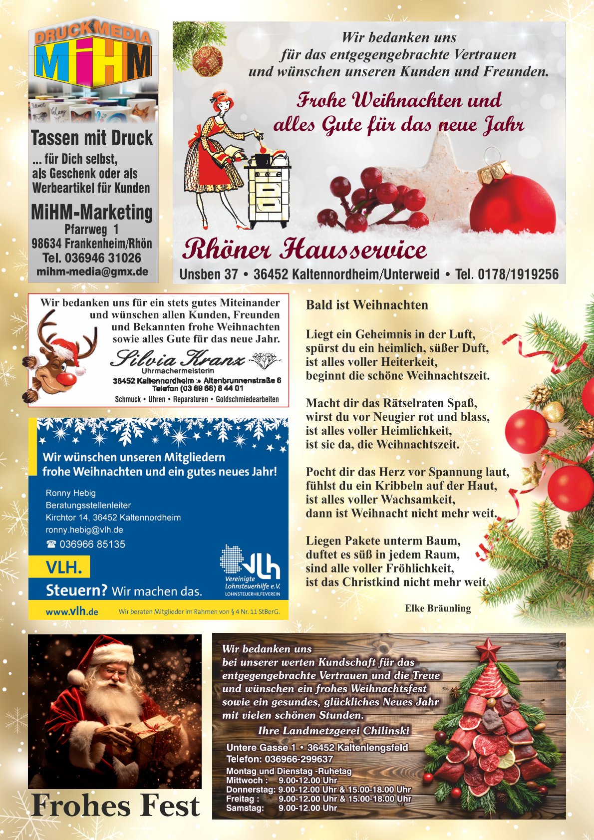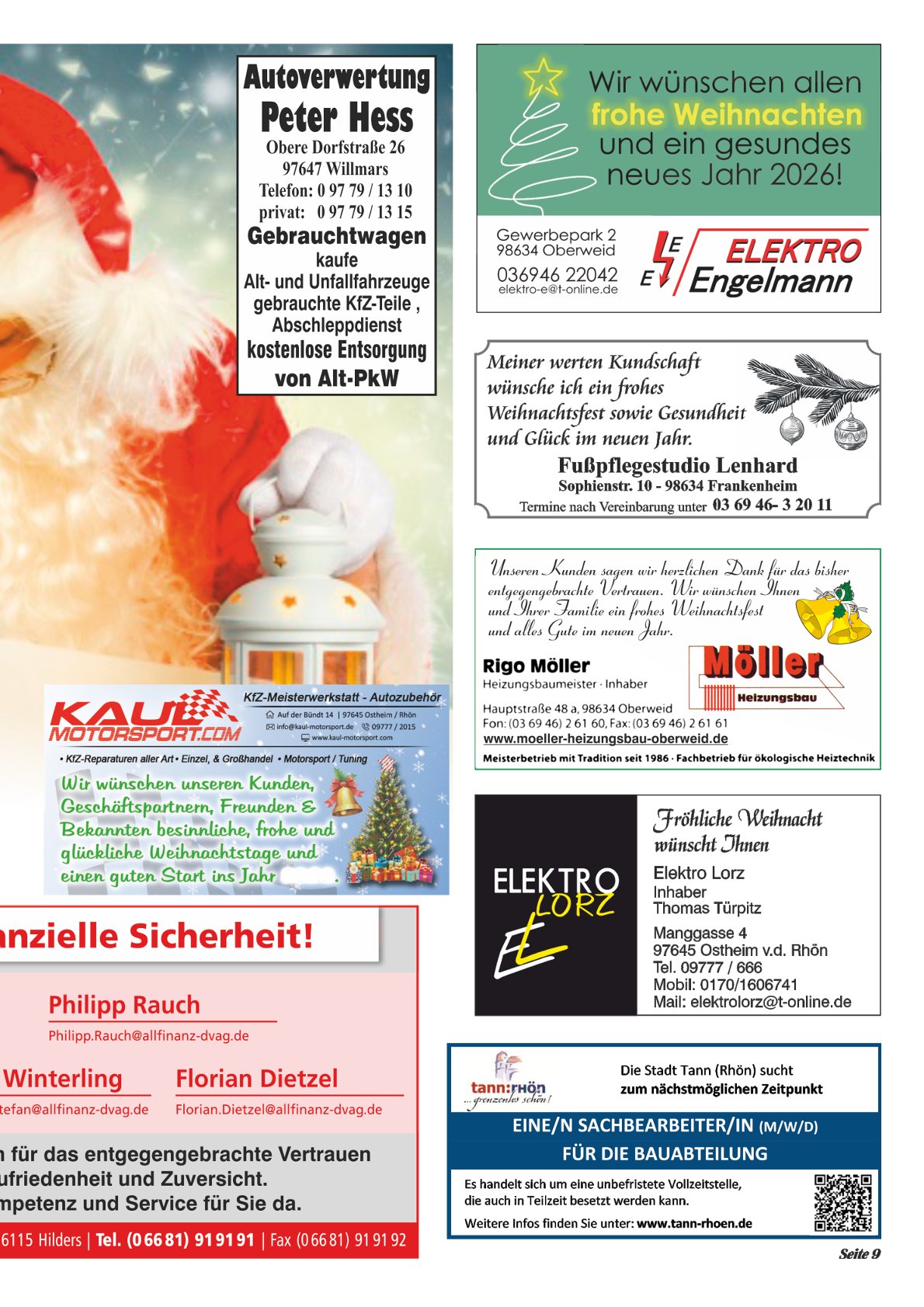 Der neue RhönAnzeiger ist da: Weihnachts-Ausgabe 2025 Posted by Redaktion15. Dezember 2025 Der beliebte RhönAnzeiger aus der Region für Euch! Informiert Euch über Gewerbebetriebe, Veranstaltungen und privaten Anzeigen. Perfekt anschauen mit der kostenlosen Rhönkanal App!