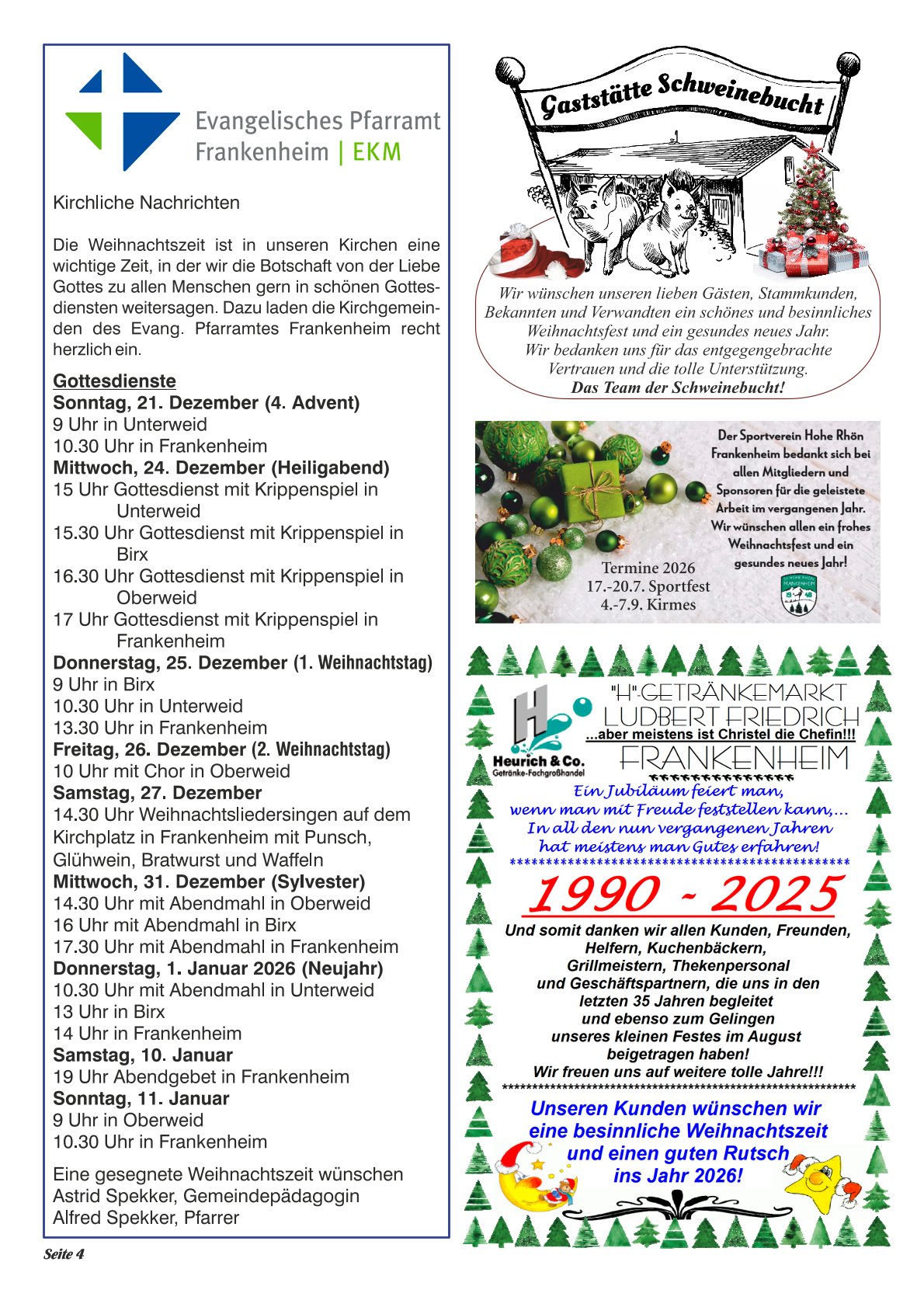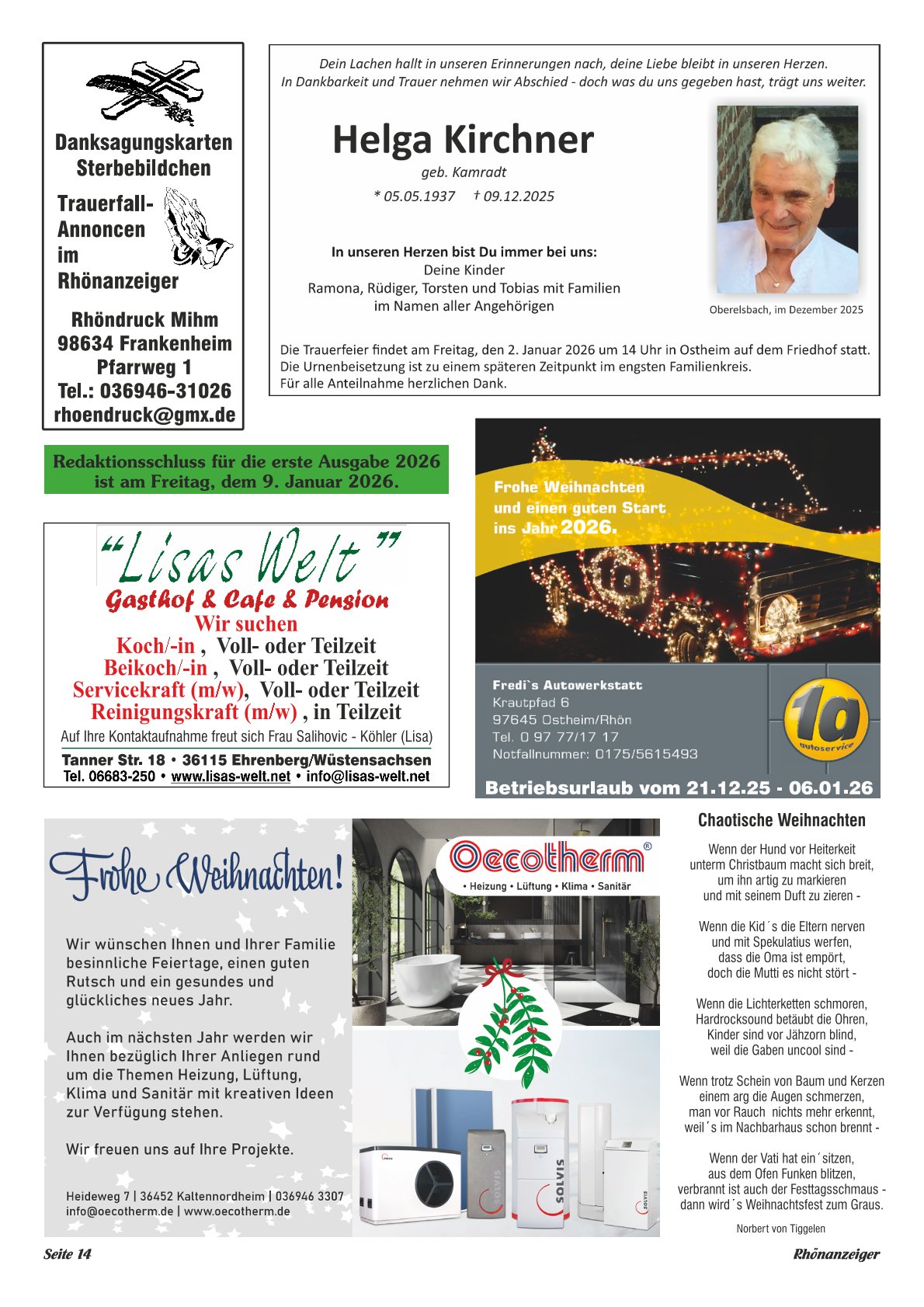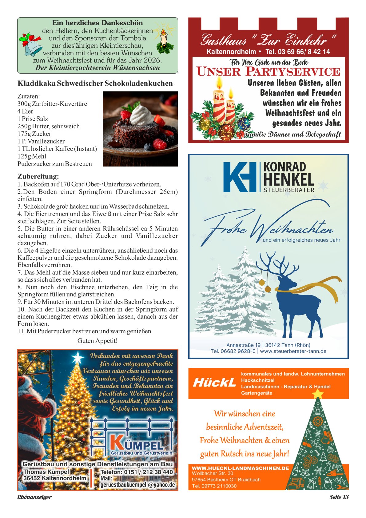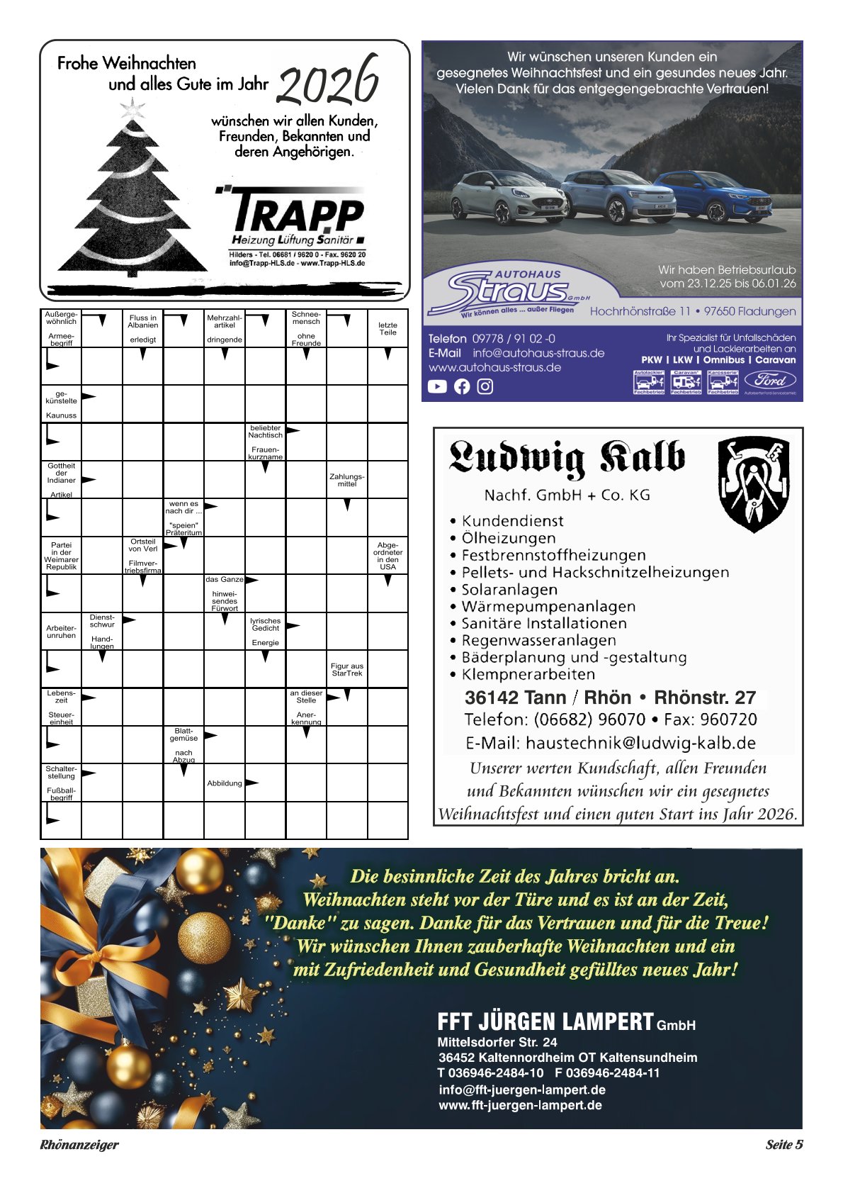 Der neue RhönAnzeiger ist da: Weihnachts-Ausgabe 2025 Posted by Redaktion15. Dezember 2025 Der beliebte RhönAnzeiger aus der Region für Euch! Informiert Euch über Gewerbebetriebe, Veranstaltungen und privaten Anzeigen. Perfekt anschauen mit der kostenlosen Rhönkanal App!