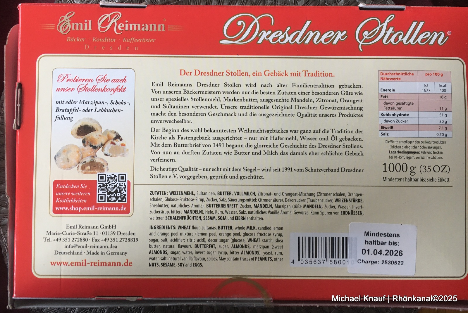 Auf Bestellung wurden von den drei Bäckereien, auch komplett fertig gebackene Christstollen, in Geisa auch „Schittchen“ genannt, verkauft.