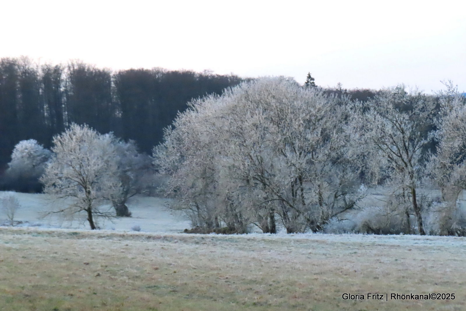 Der Raureif auf den Bäumen sorgte für einen magischen Augenblick. Die aufgehende Sonne legte sanft ihr Licht auf die mit Raureif bedeckten Bäume und ließ sie goldgelb leuchten.