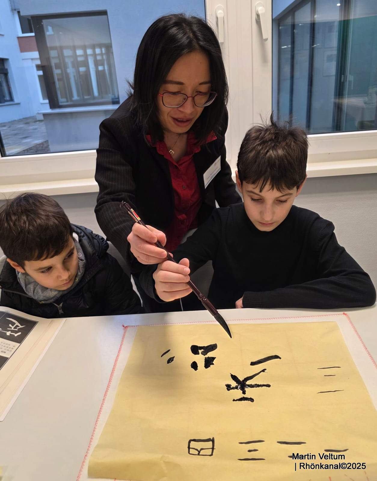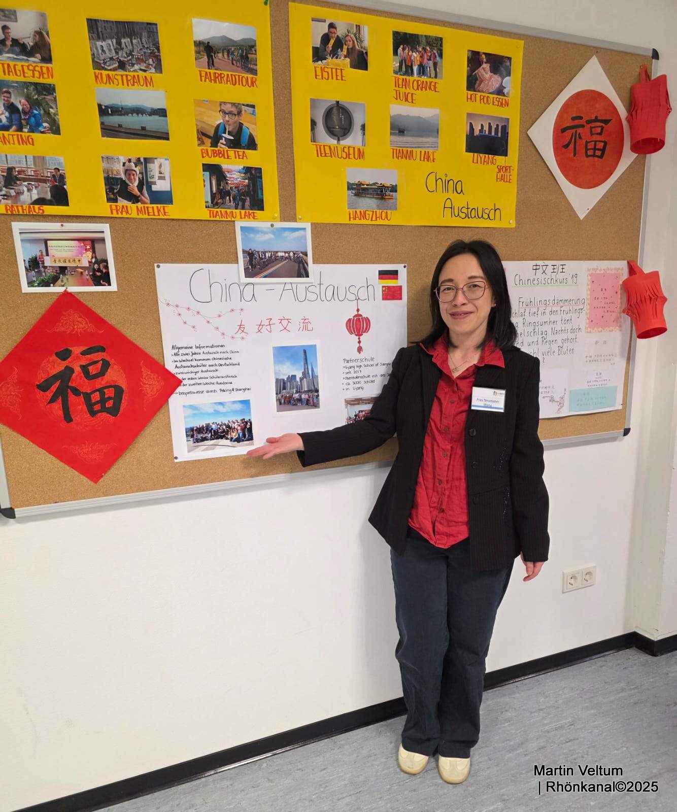 Ein weiterer Höhepunkt war der Infostand zum Oberstufenkurs Chinesisch, betreut von Qian Neumann-Wang. Der Kurs wird ab der Jahrgangsstufe 11 angeboten und zählt derzeit 23 Schülerinnen und Schüler aus drei Jahrgangsstufen.