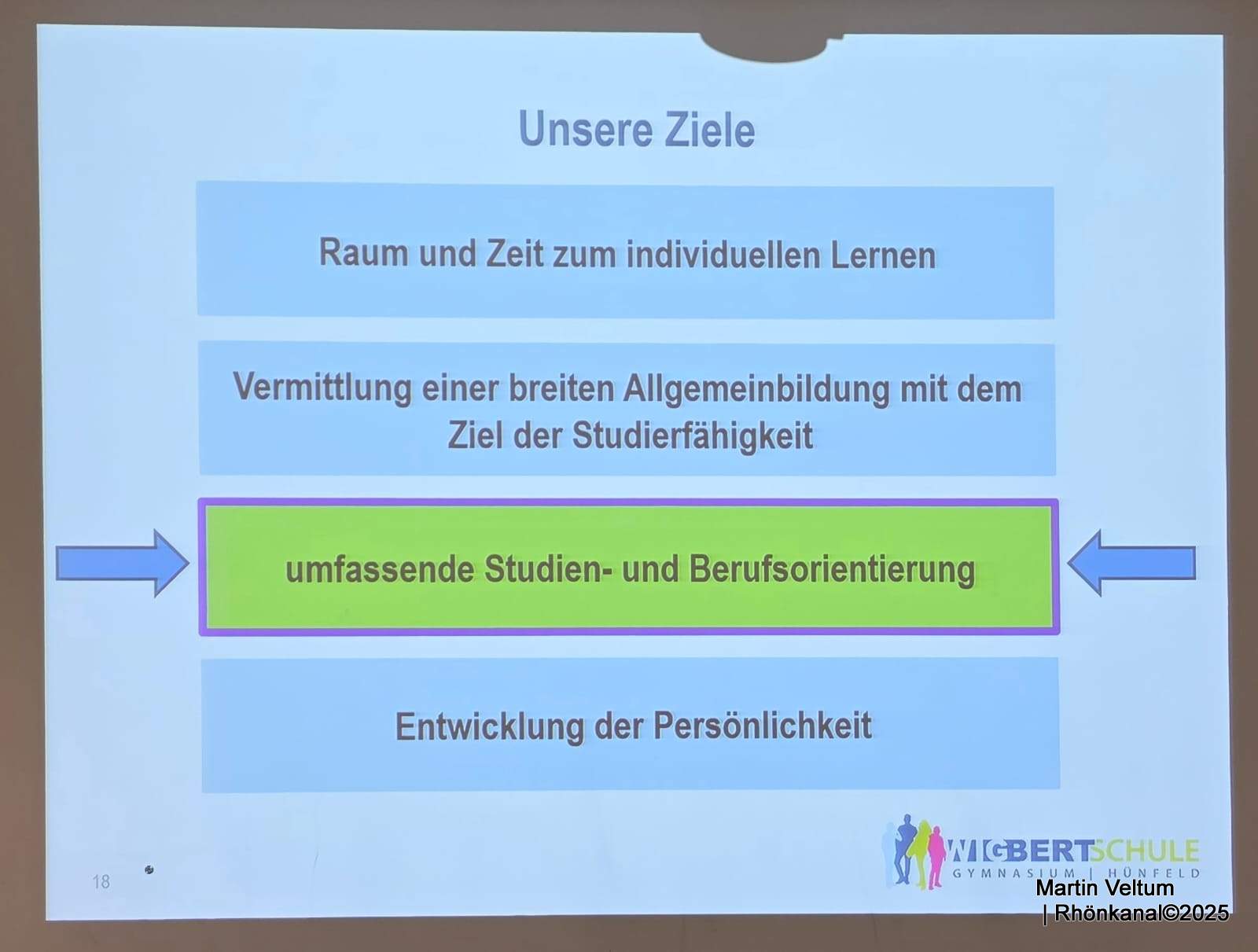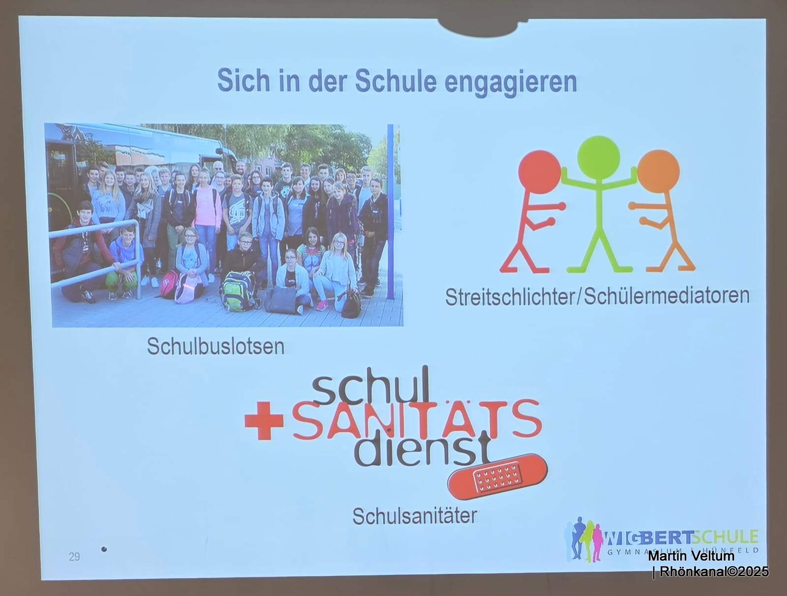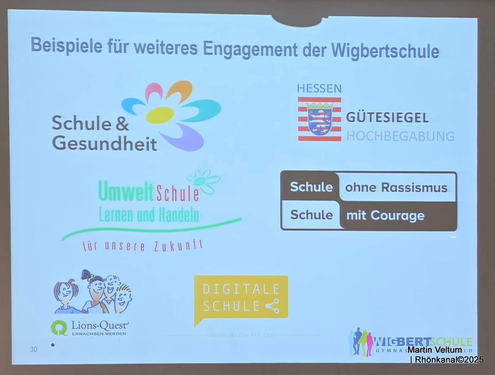 Schulleiterin Sandra Möllers präsentierte in einem Vortrag das Leitbild der Schule. Die sechs Bausteine – Übergänge gestalten, Bildung und Förderung stärken, Persönlichkeit entwickeln, Kooperation und Öffnung leben, Schulalltag gestalten sowie Schulkultur weiterentwickeln – spiegeln den ganzheitlichen Anspruch der Wigbertschule wider.