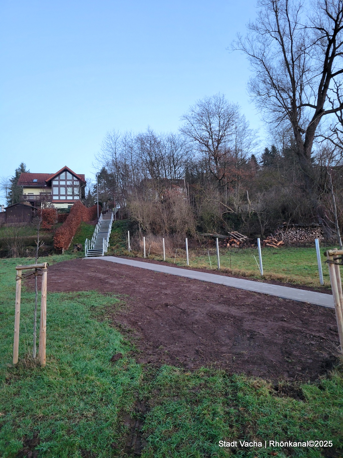 Im Zuge des Neubaus des Rewe-Marktes erhielt die Stadt Vacha zweckgebundene Mittel, um den Weg umfassend zu sanieren. Die Firma Metallbau Most errichtete zunächst eine neue Metalltreppe für das steile Teilstück.