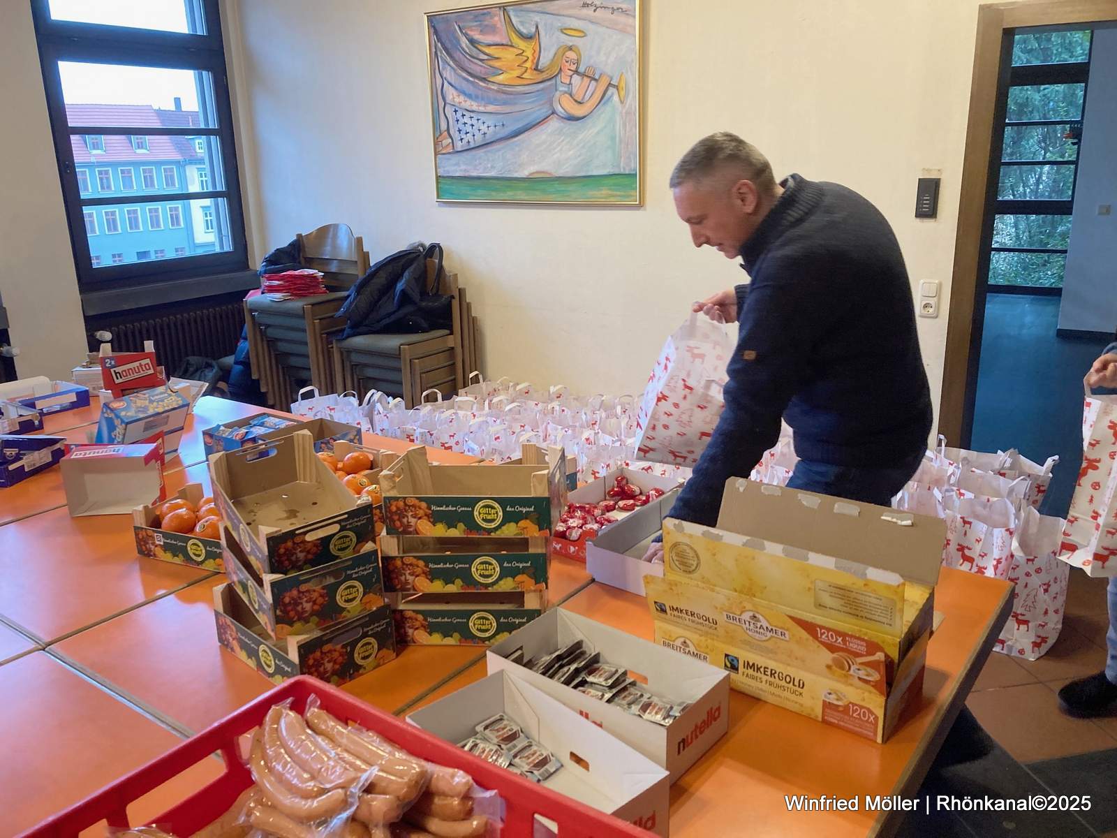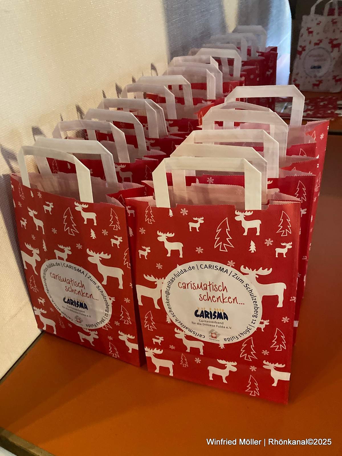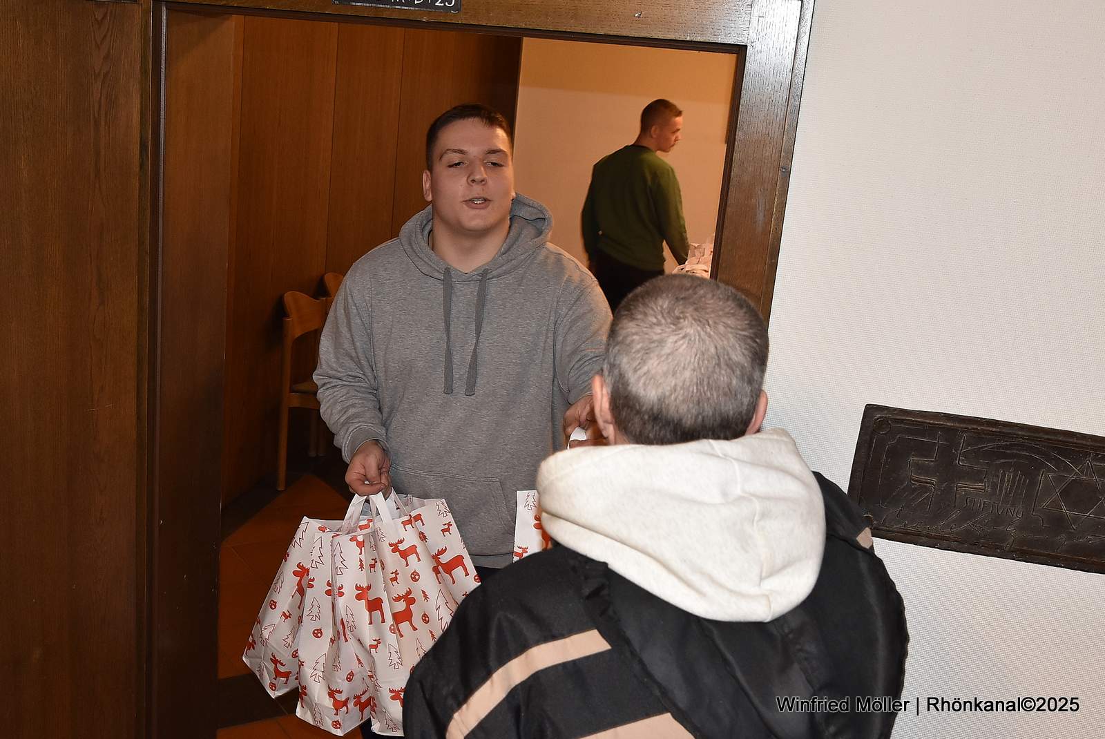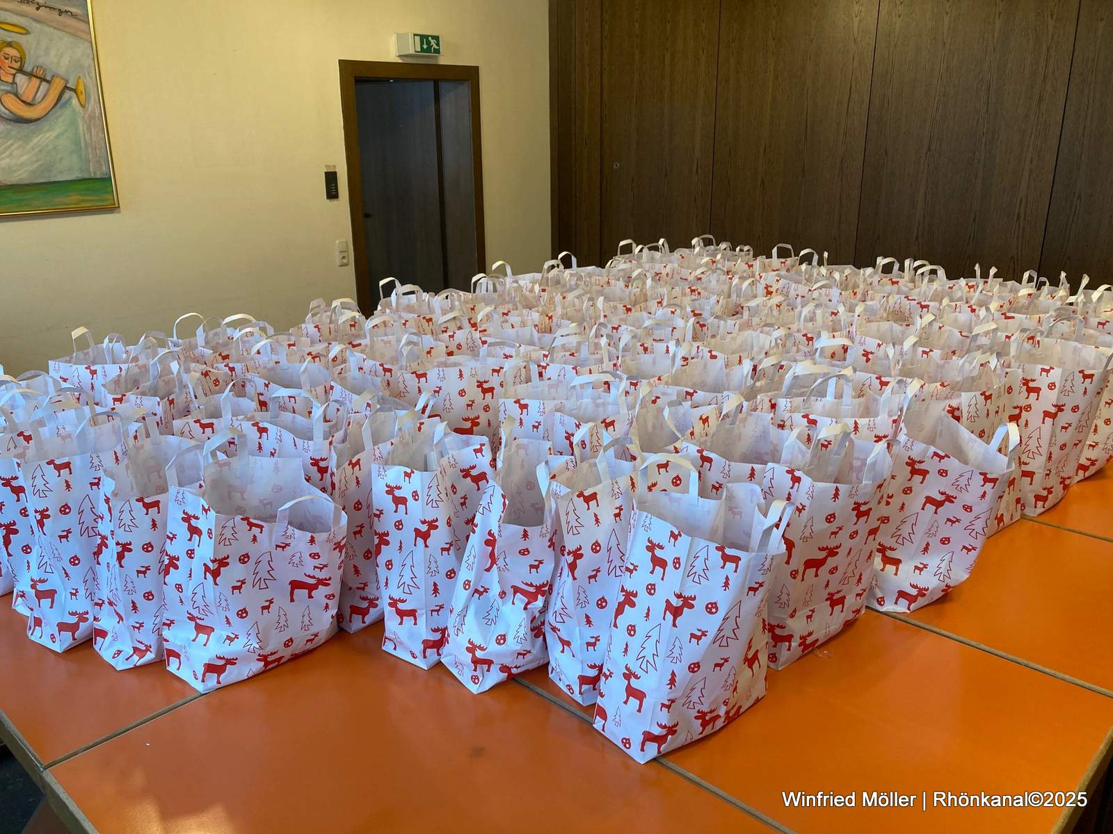 Jeder Gast konnte am Ende der Feier eine Geschenktüte, die zuvor von Mitarbeitenden der Caritas liebevoll gepackt worden war, mit nach Hause nehmen. Sie enthielt unter anderem abgepackter Ware wie Wurst, Suppe, Lebkuchen, Süßigkeiten, Hygieneartikel.