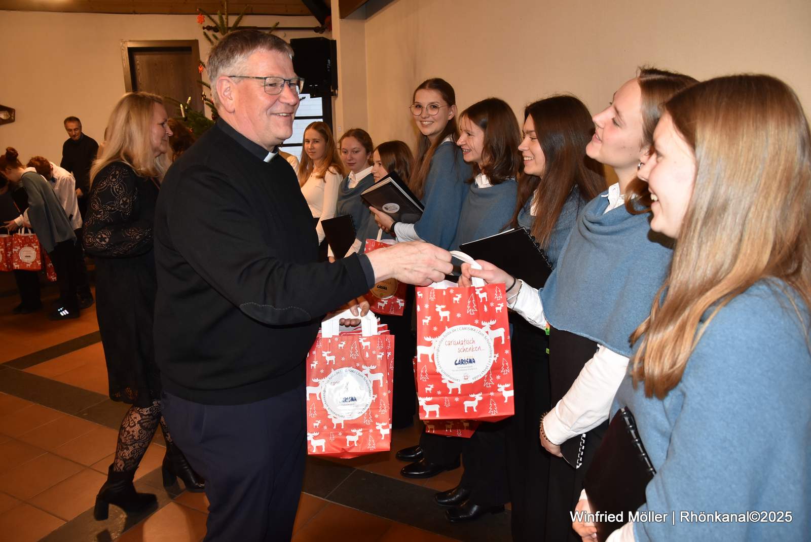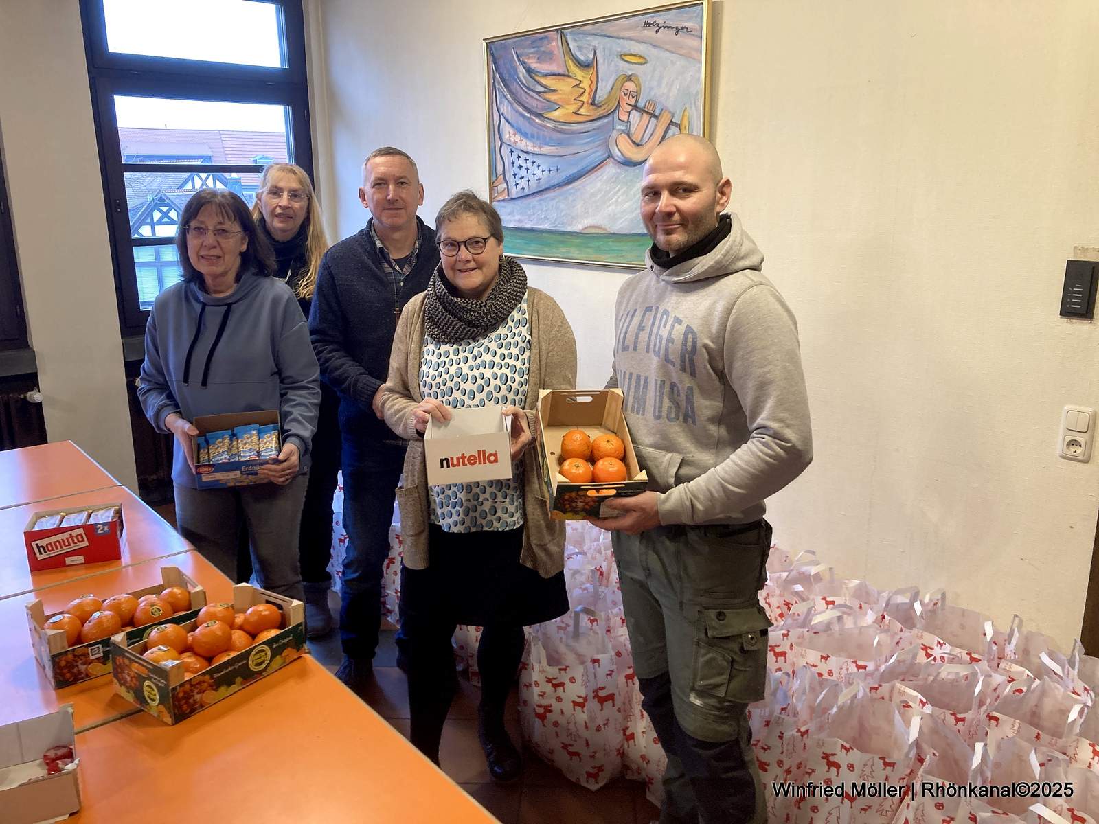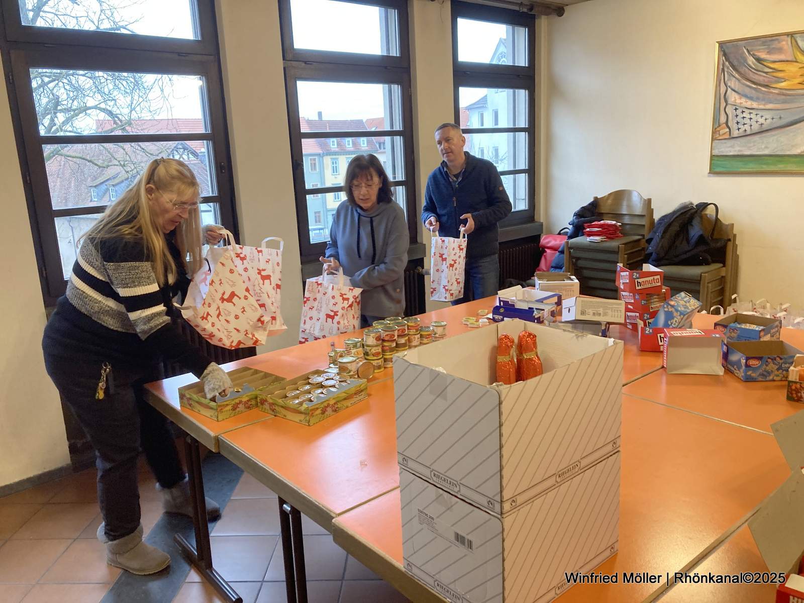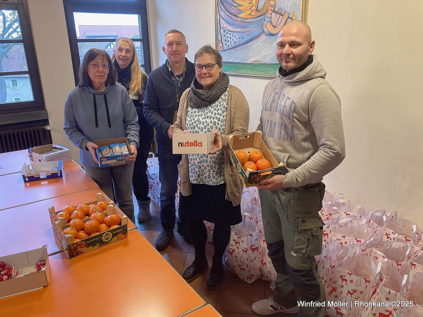 Jeder Gast konnte am Ende der Feier eine Geschenktüte, die zuvor von Mitarbeitenden der Caritas liebevoll gepackt worden war, mit nach Hause nehmen. Sie enthielt unter anderem abgepackter Ware wie Wurst, Suppe, Lebkuchen, Süßigkeiten, Hygieneartikel.
