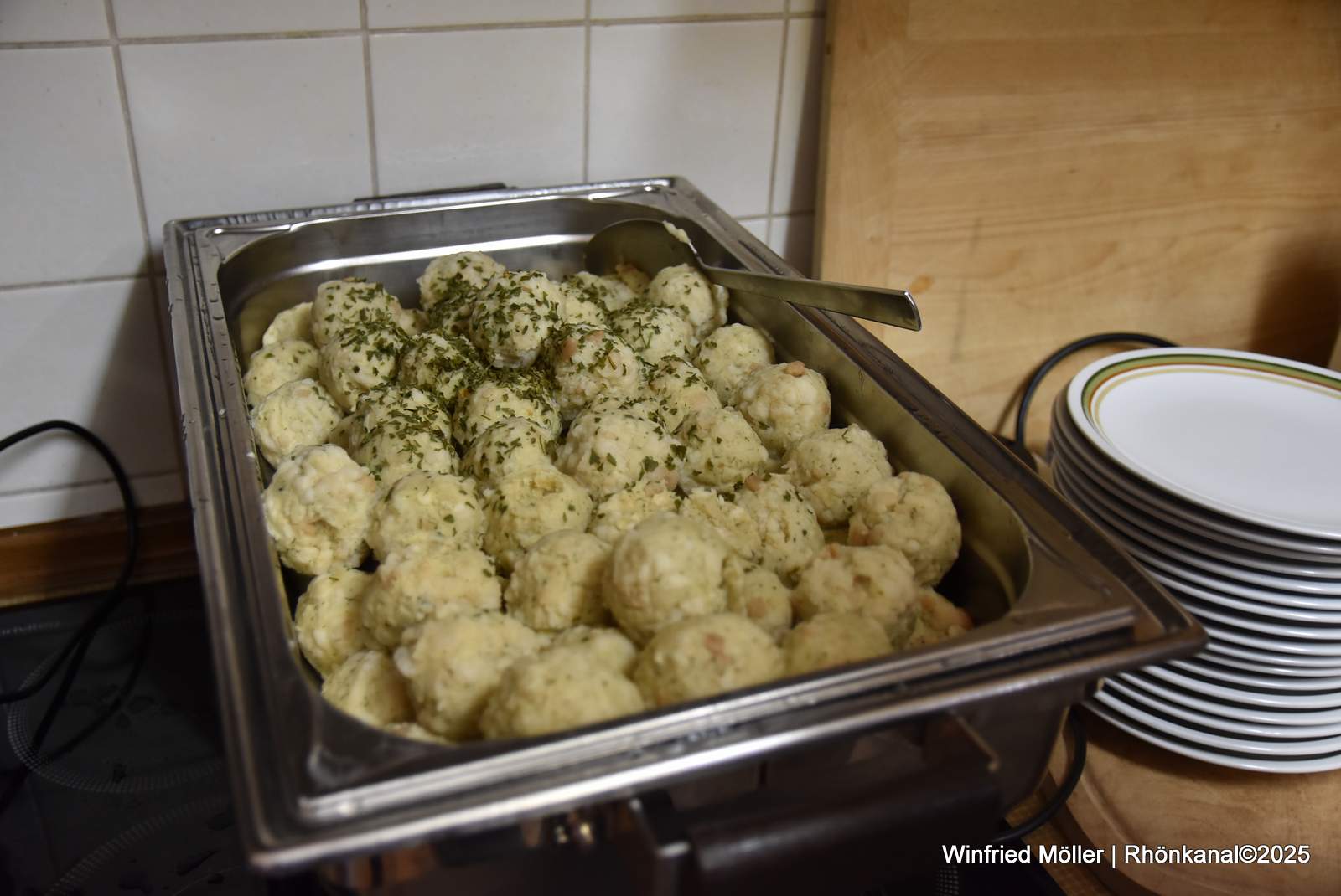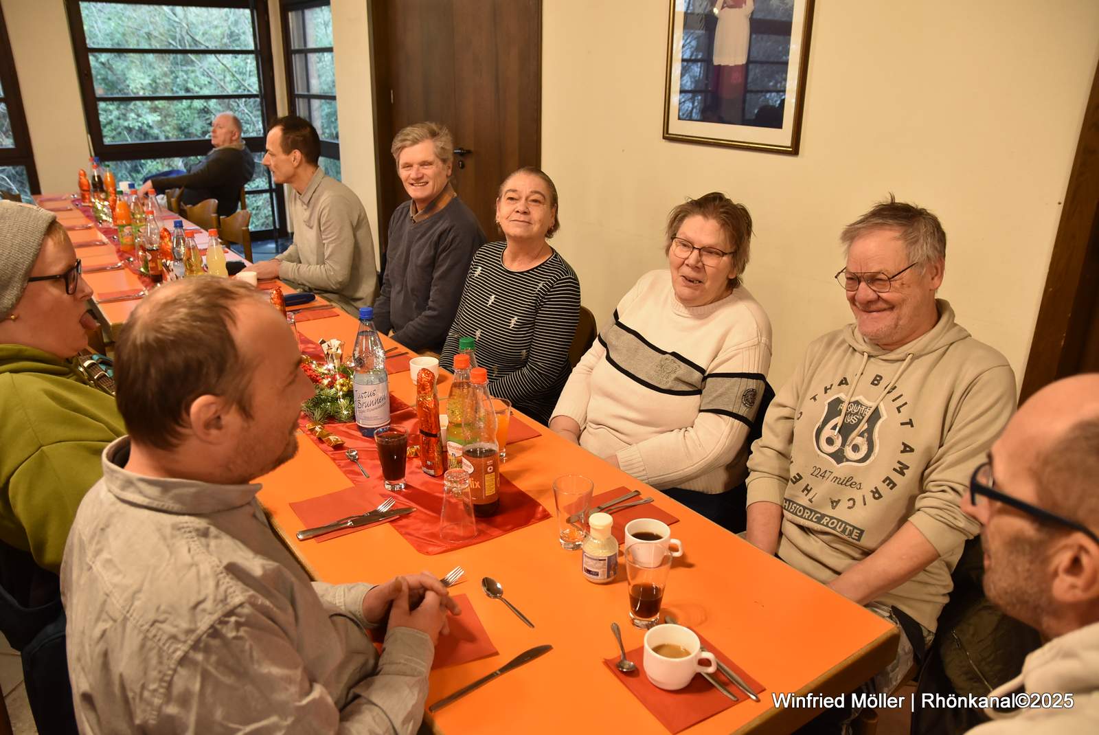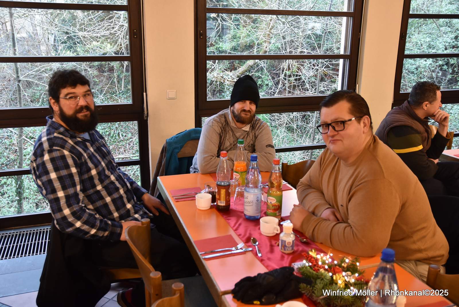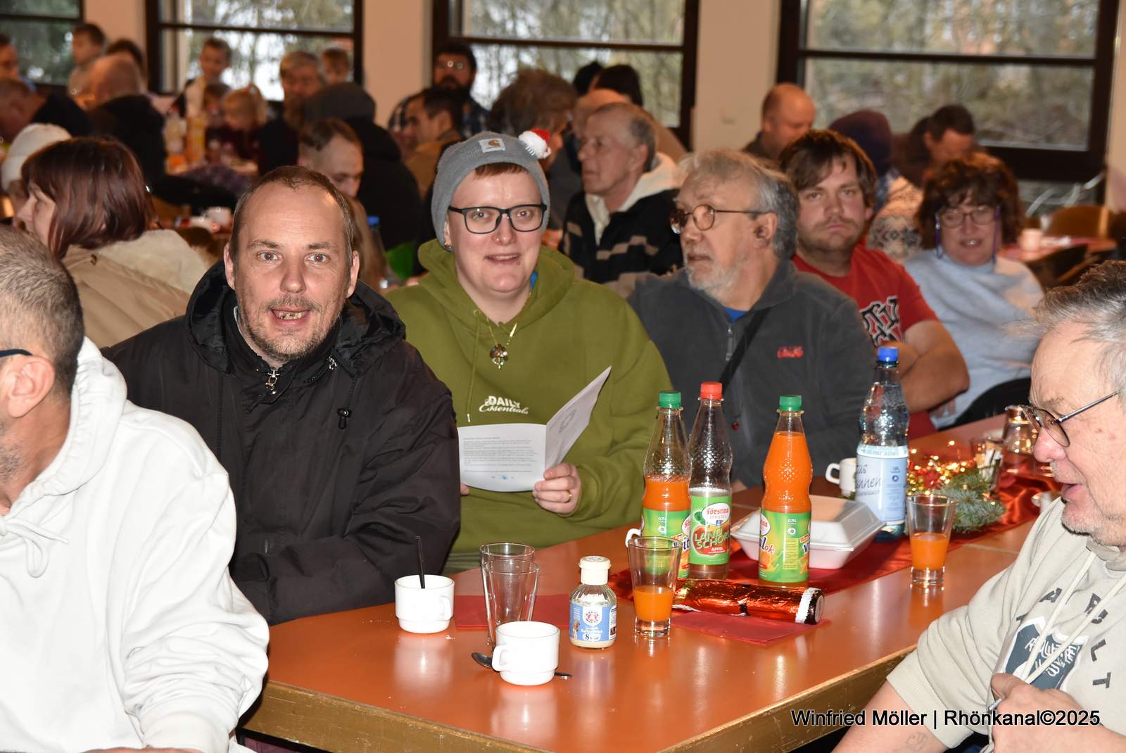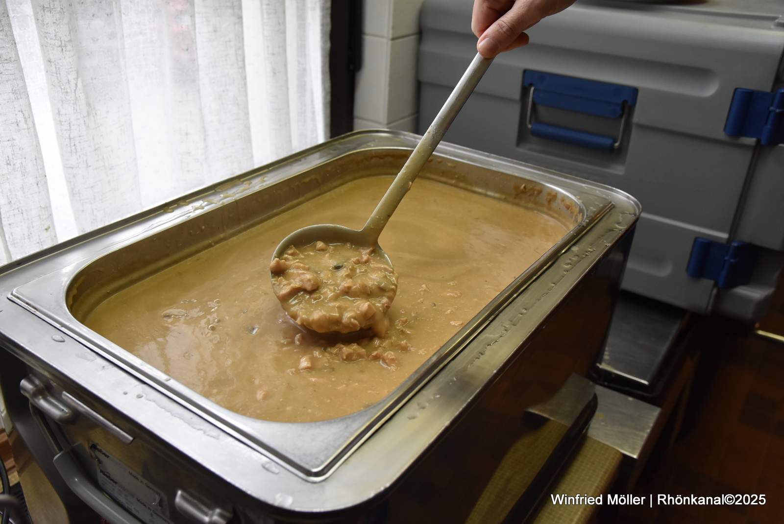 Die Heiligabendfeier begann mit dem festlichen Mittagessen. Es gab Hähnchengulasch mit Klösen und Rotkraut, sowie ein vegetarisches Gericht. Beides hatte die Firma Schneider, wie alljährlich, geliefert.