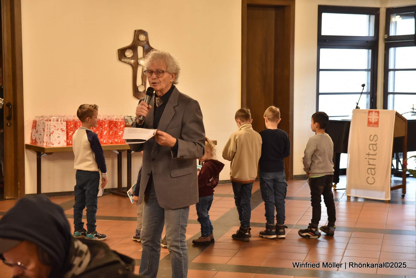 Zuvor begrüßte Caritasdirektor Dr. Markus Juch die Gäste. Er sei erfreut, dass der Saal im Dompfarrzentrum bis auf den letzten Platz gefüllt sei. Weihnachten müsse niemand allein feiern, deshalb sei die Feier an Heiligen Abend vor 40 Jahren ins Leben gerufen worden. Sein besonderer Dank galt den Ehrenamtlichen, Hauptamtlichen und Spendern, ohne die das alles nicht möglich sei.