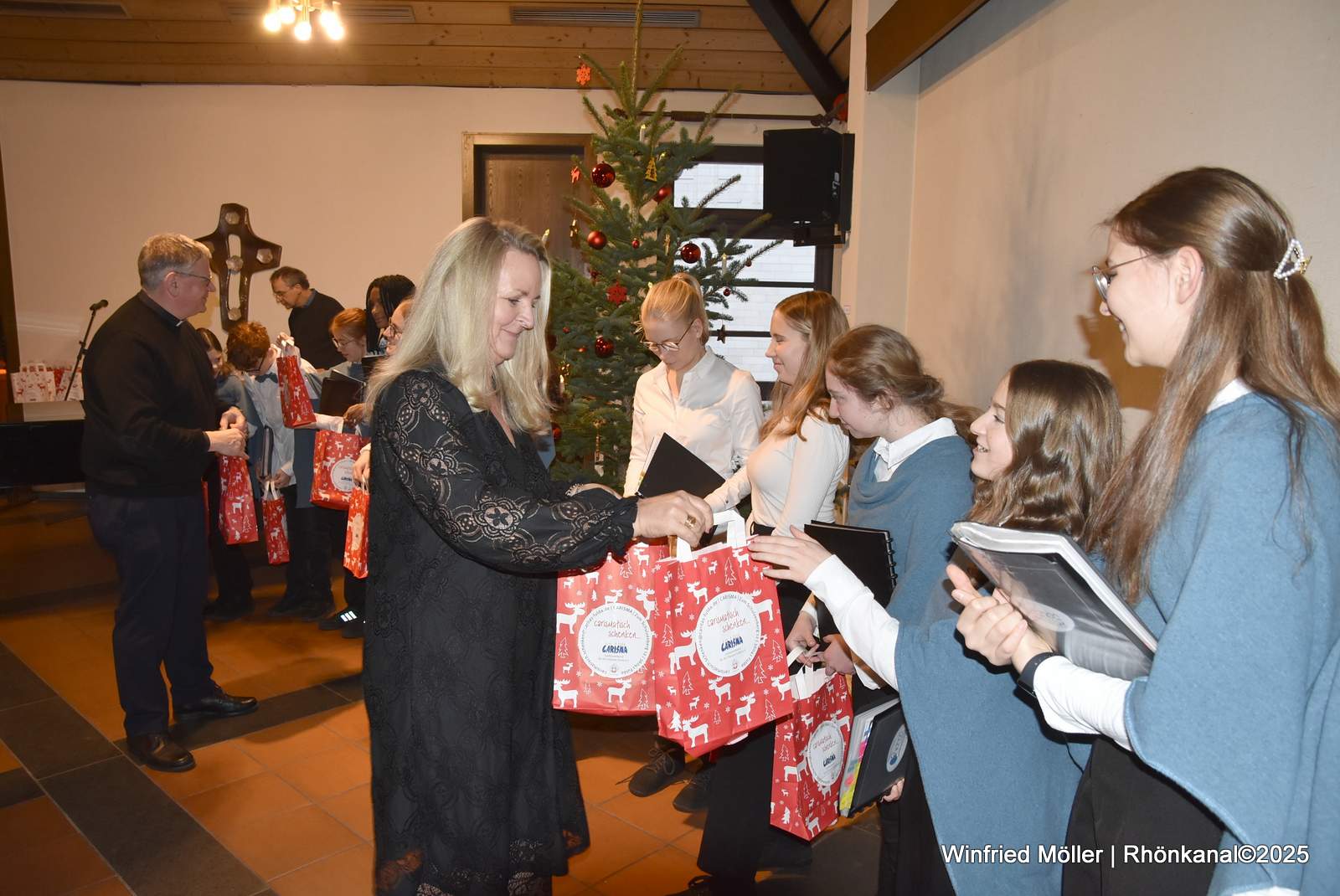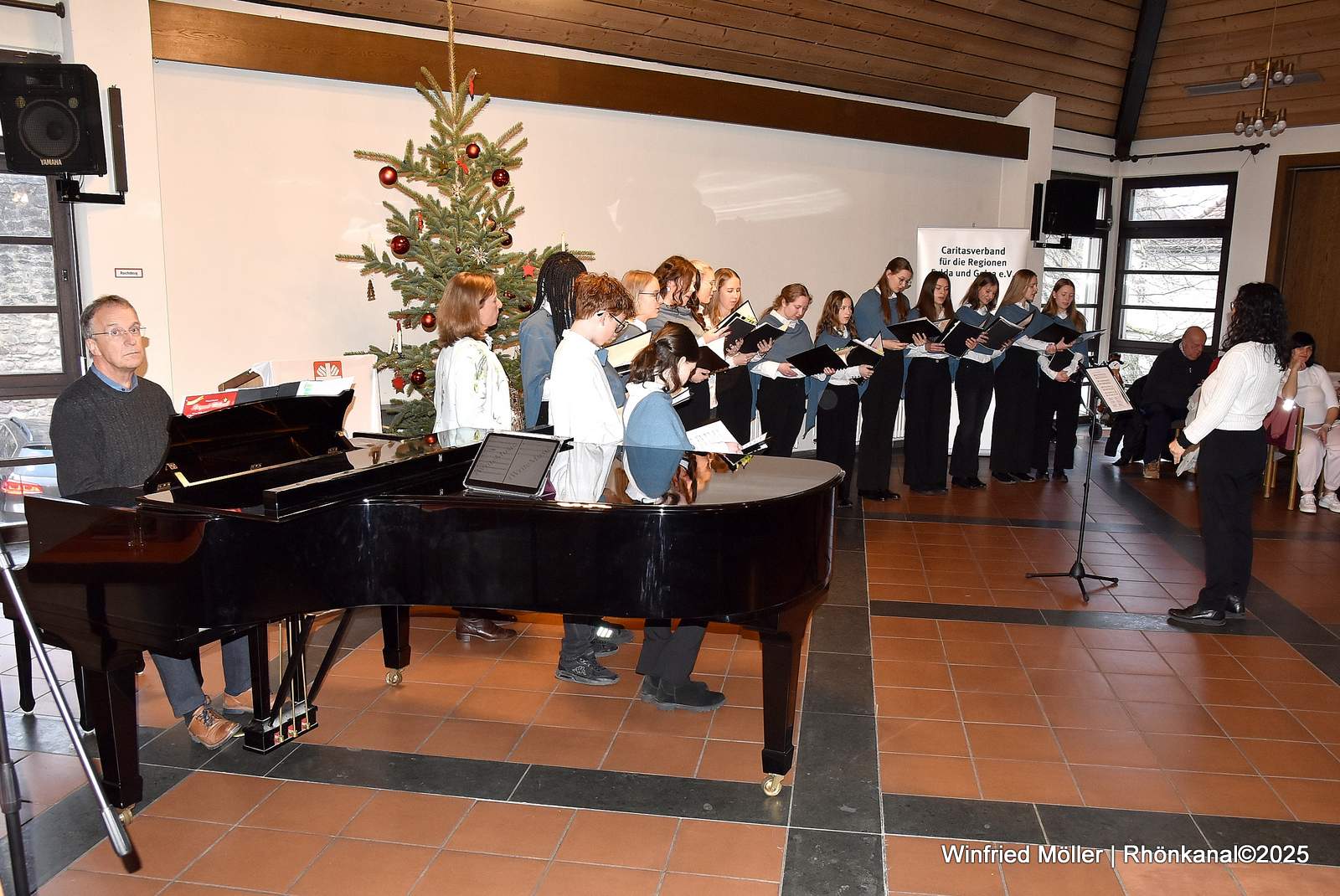 Mit dem Auftritt des Kinder- und Jugendchor St. Bonifatius (Vorsitzende Bridget Schreiner, Klavier Rainer Klitsch, Dirigat Bettina Schaaf) kam die festliche Stimmung zum Höhepunkt. Es waren eigens Liedzettel vorbereitet worden, und die Anwesenden sangen bei „O Tannenbaum; Alle Jahre wieder und Leise rieselt der Schnee“ kräftig mit. Natürlich durfte im Laufe des Nachmittags Kaffee und Kuchen nicht fehlen.