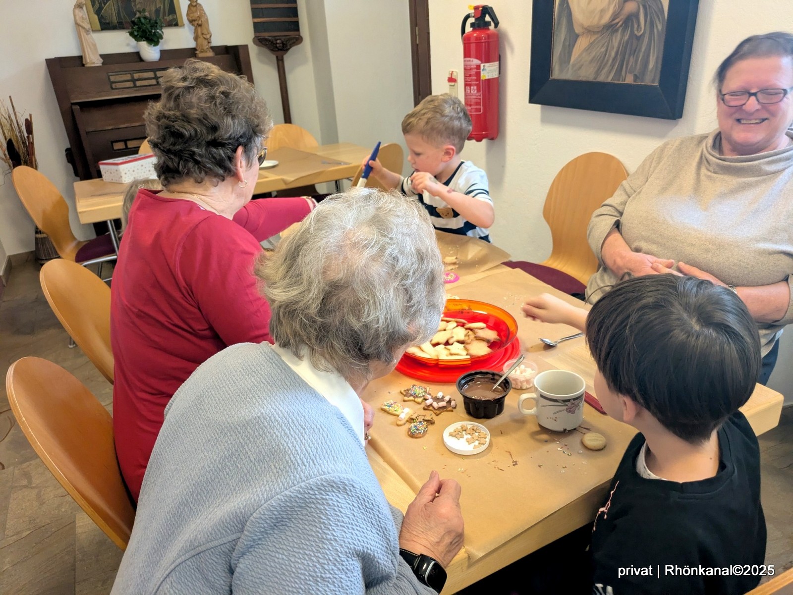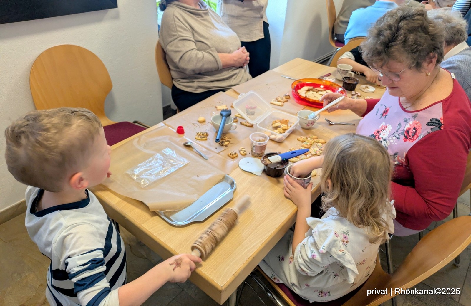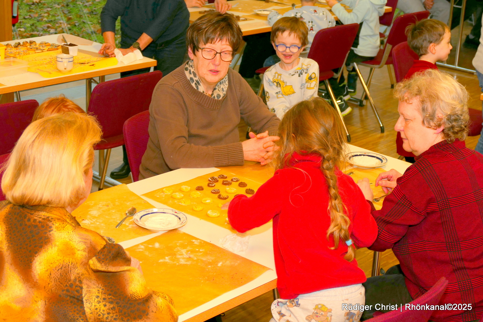 Gemeinsam bereiteten Kinder und Senioren Plätzchen für die anschließende Kaffeerunde vor, sangen am Adventskranz traditionelle Lieder und tauschten sich über die Bedeutung von Weihnachten aus.