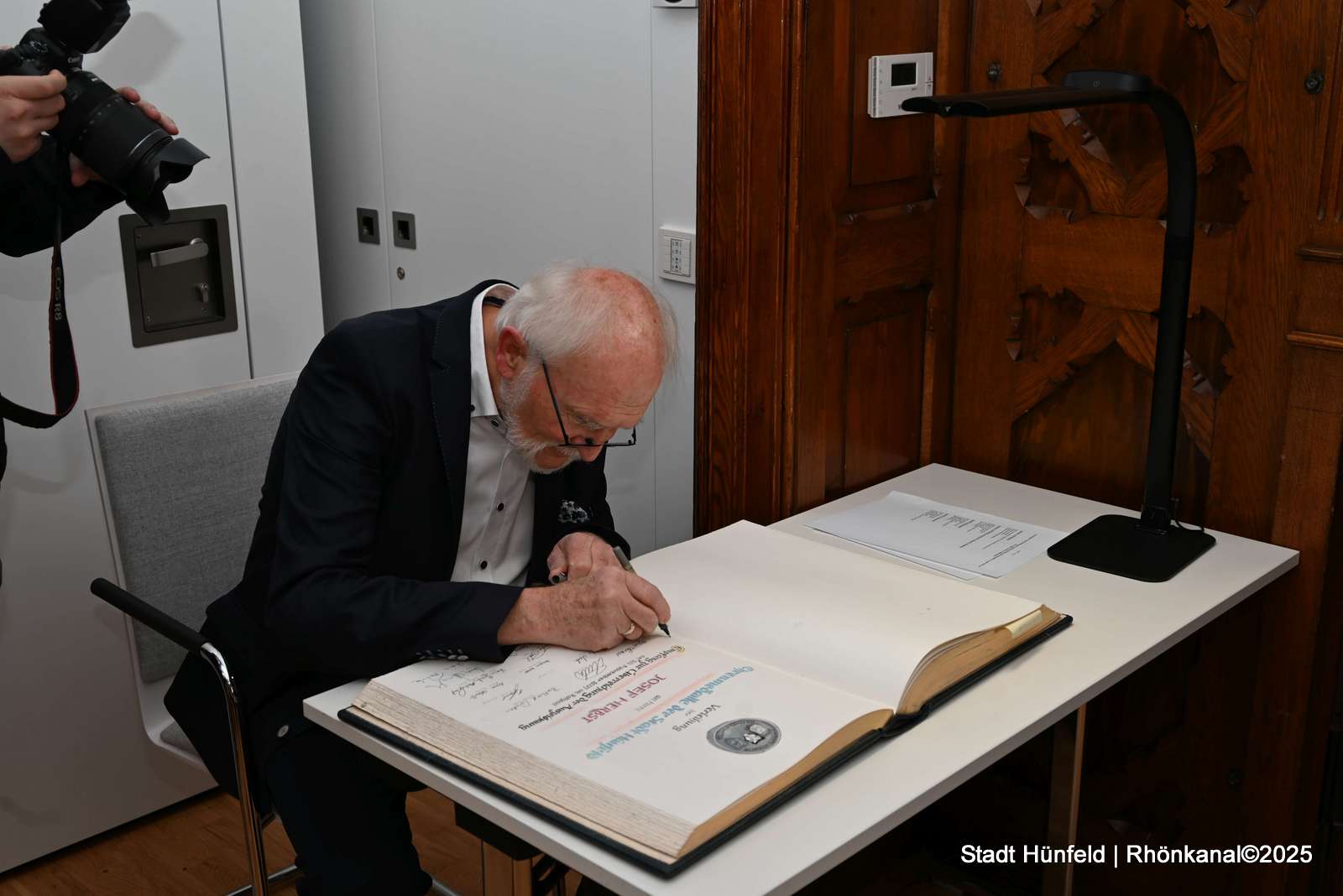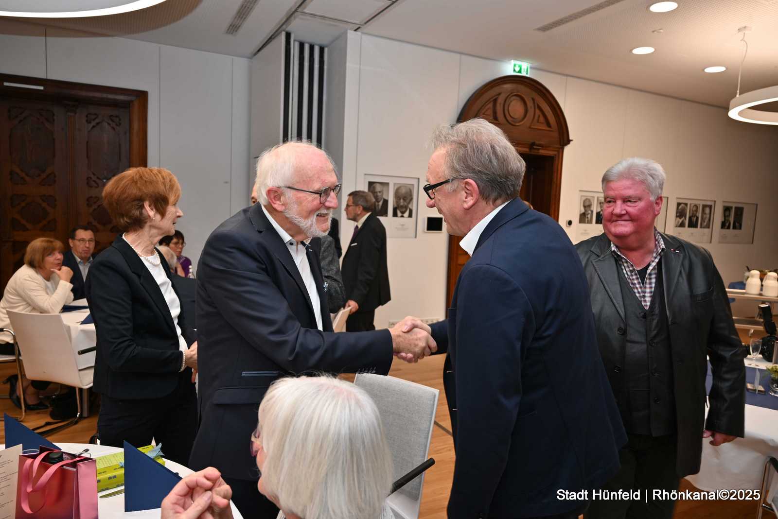 Im Rahmen eines Magistratsempfangs konnten Bürgermeister Benjamin Tschesnok und Stadtverordnetenvorsteher Berthold Quell ihm diese Ehrung im Kreise zahlreiche Weggefährten des langjährigen Hünfelder Amtsgerichtdirektors überreichen.