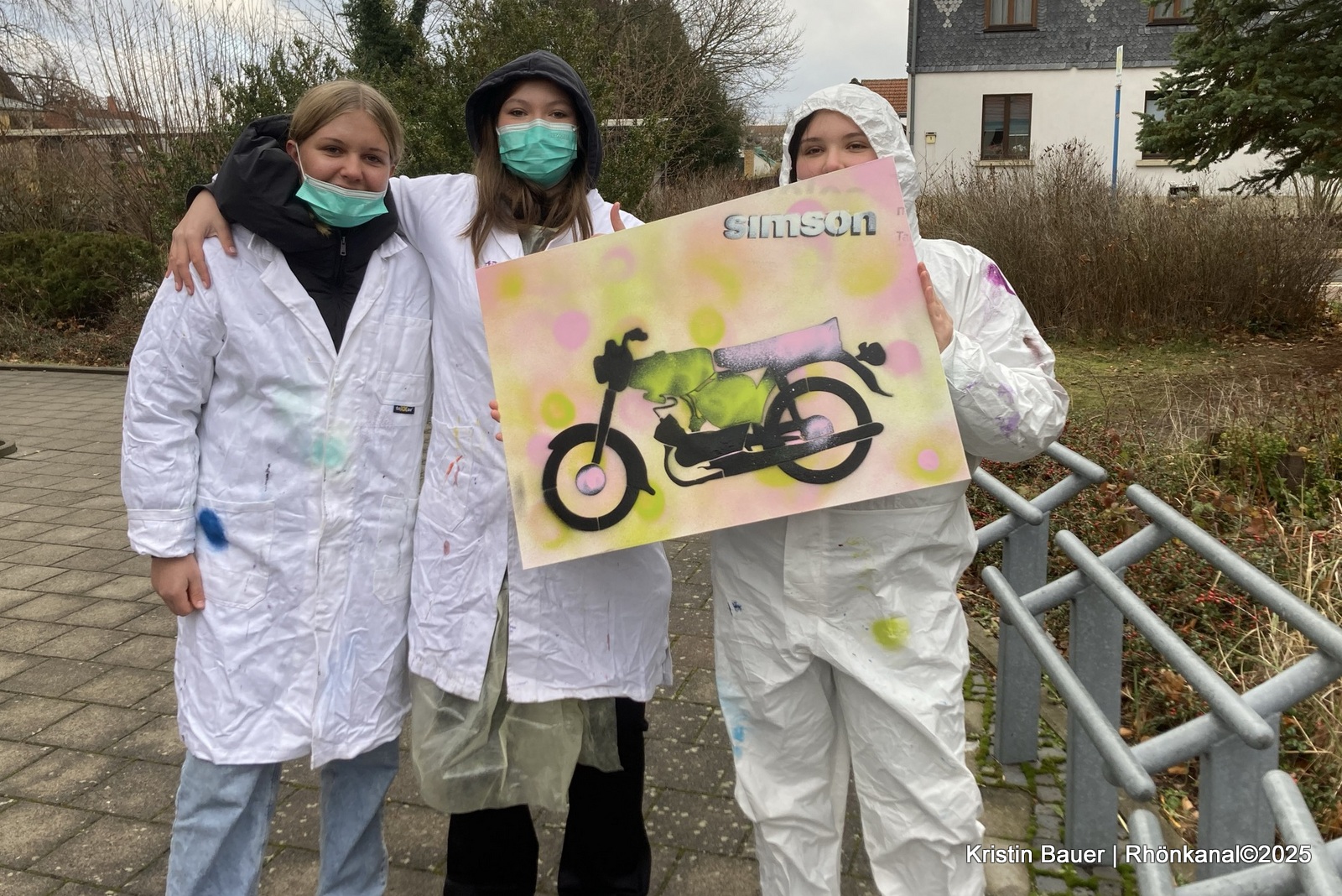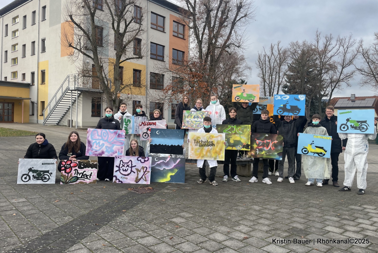 Ein herzliches Dankeschön geht an das Team von Tacheles mit Simson sowie an die Graffiti-Künstler*innen aus Weimar, die mit ihrer lockeren Art und der gelungenen Mischung aus Theorie und Praxis diesen Tag zu einem besonderen Erlebnis für unsere Schülerinnen und Schüler gemacht haben.