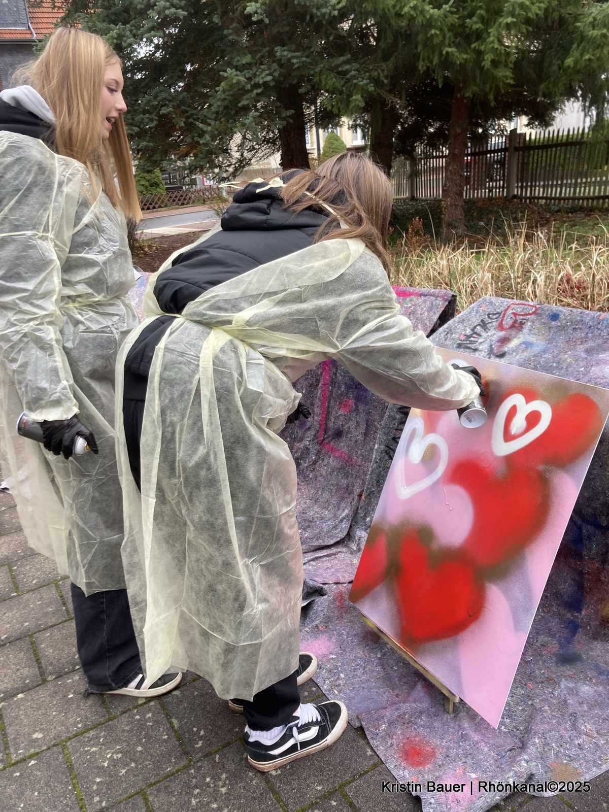 Unterstützt von Graffiti-Künstler*innen aus Weimar und Referentinnen von „Tacheles mit Simson“ arbeiteten die Schüler*innen so konzentriert, dass Pausen kaum jemand einlegen wollte und sie selbst staunten, was sie alles geschafft hatten.