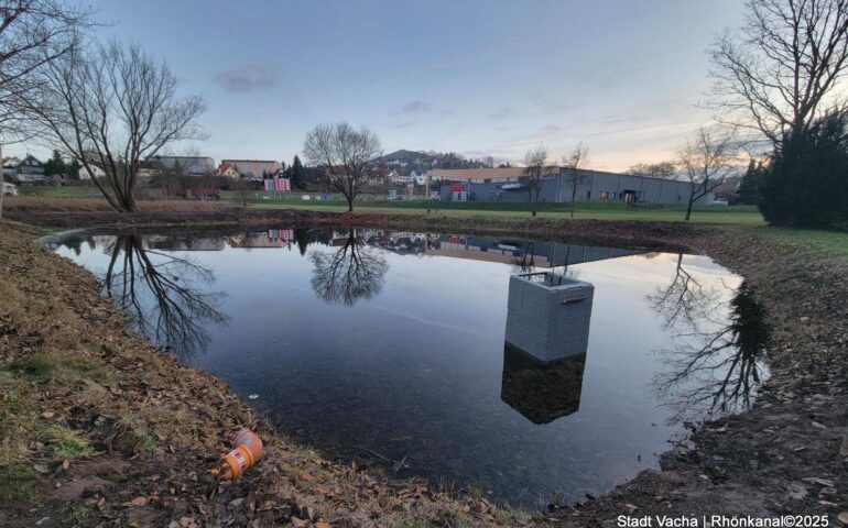 Das Projekt wurde 2025 durch die Stadt Vacha umgesetzt und durch die KfW mit 80 Prozent gefördert. Der Teich beginnt sich bereits sichtbar zu füllen – ein wichtiger Schritt für Natur, Artenvielfalt und Naherholung in der Stadt.