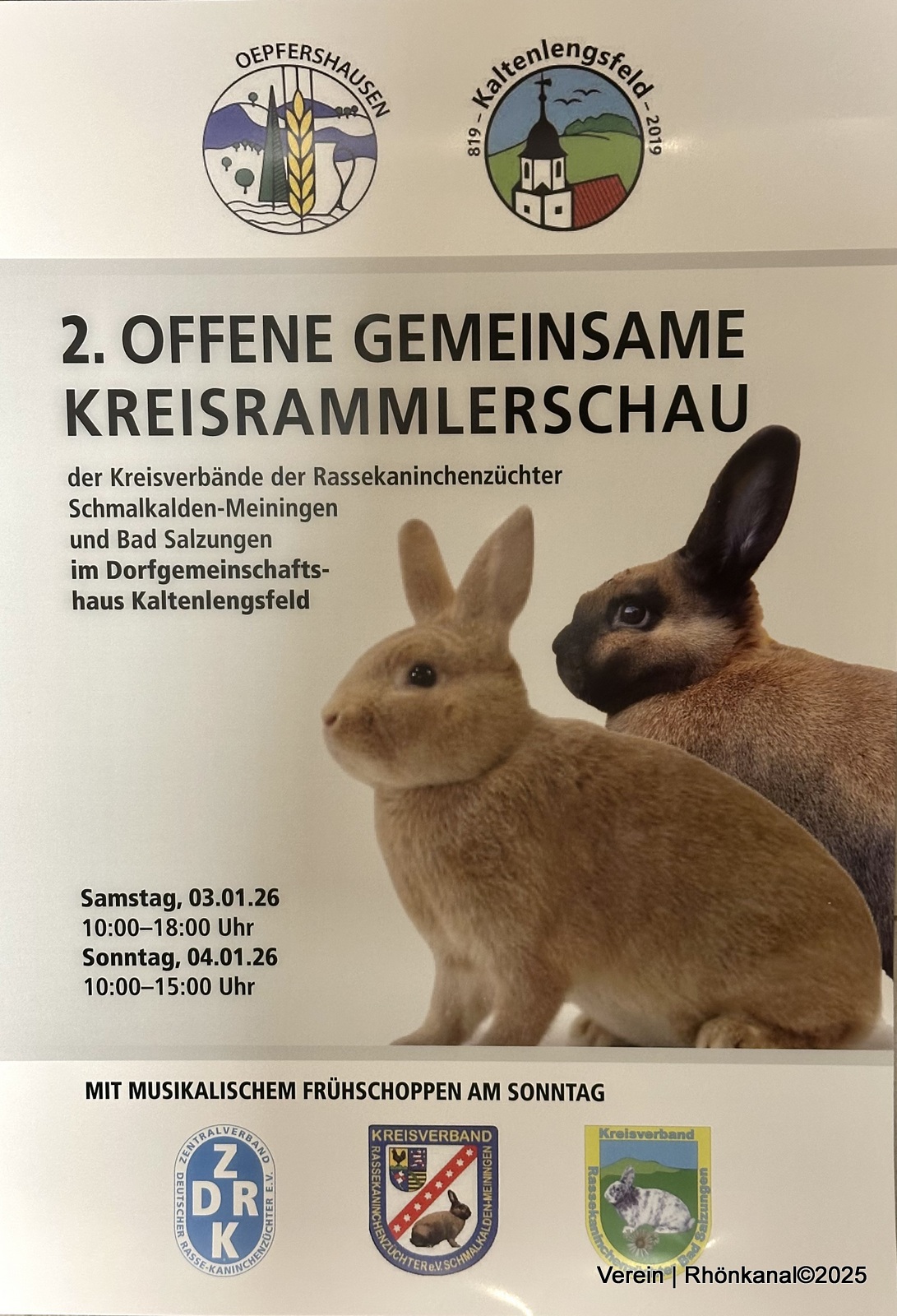Die Kleintierzuchtvereine aus Oepfershausen und Kaltenlengsfeld laden am 3. und 4. Januar 2026 herzlich zur zweiten gemeinsamen offenen Kreisrammlerschau ein.