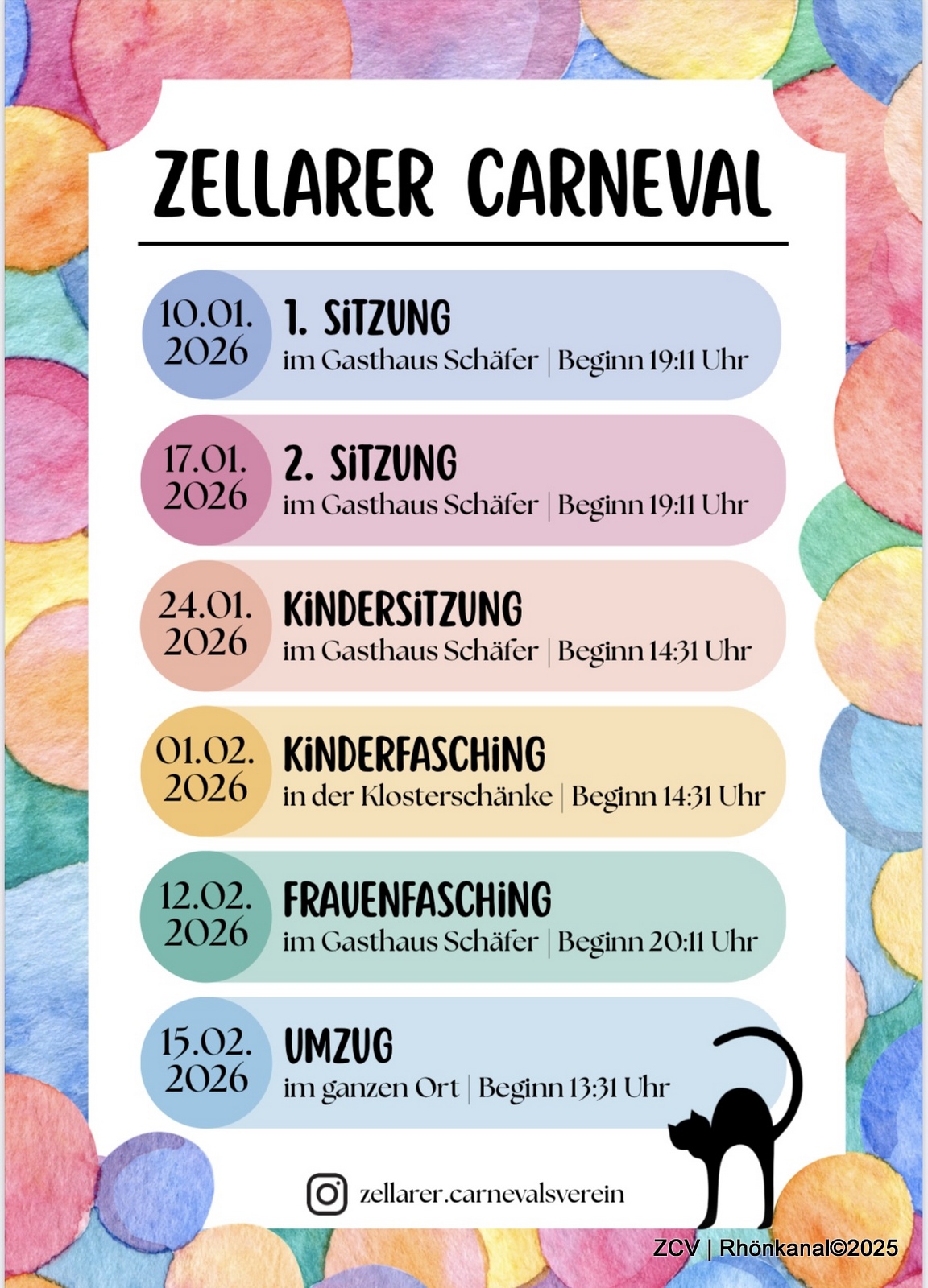 Unter dem Motto „Freude, Tradition und Gemeinschaft“ lädt der Zellaer Carnevalsverein alle Närrinnen und Narren ein, gemeinsam fröhliche und unbeschwerte Stunden zu verbringen.