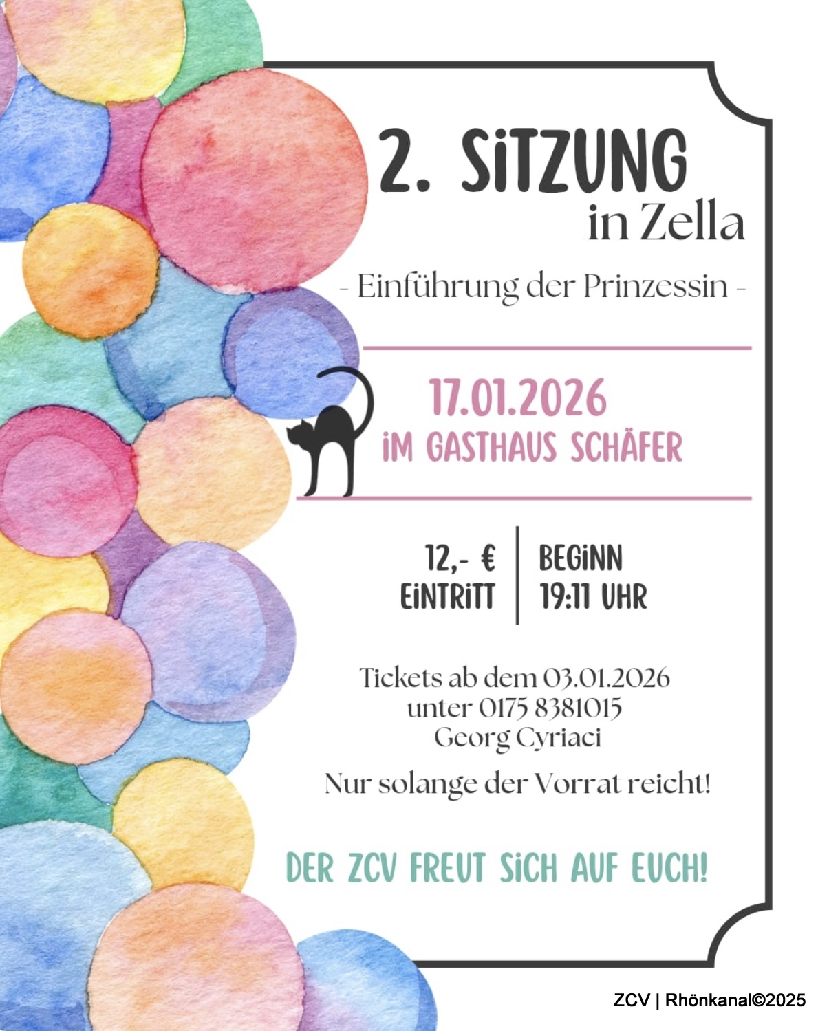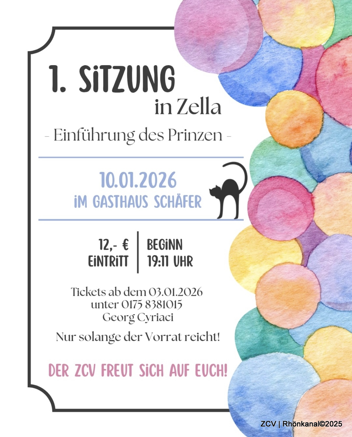 Der Eintritt kostet je Sitzung: 12 Euro. Karten / Ticketanfragen: ab 3. Januar 2026 ausschließlich telefonisch unter 0175 8381015 (Georg Cyriaci) oder per Instagram-Direktnachricht (DM) über @zellarer.carnevalsverein.