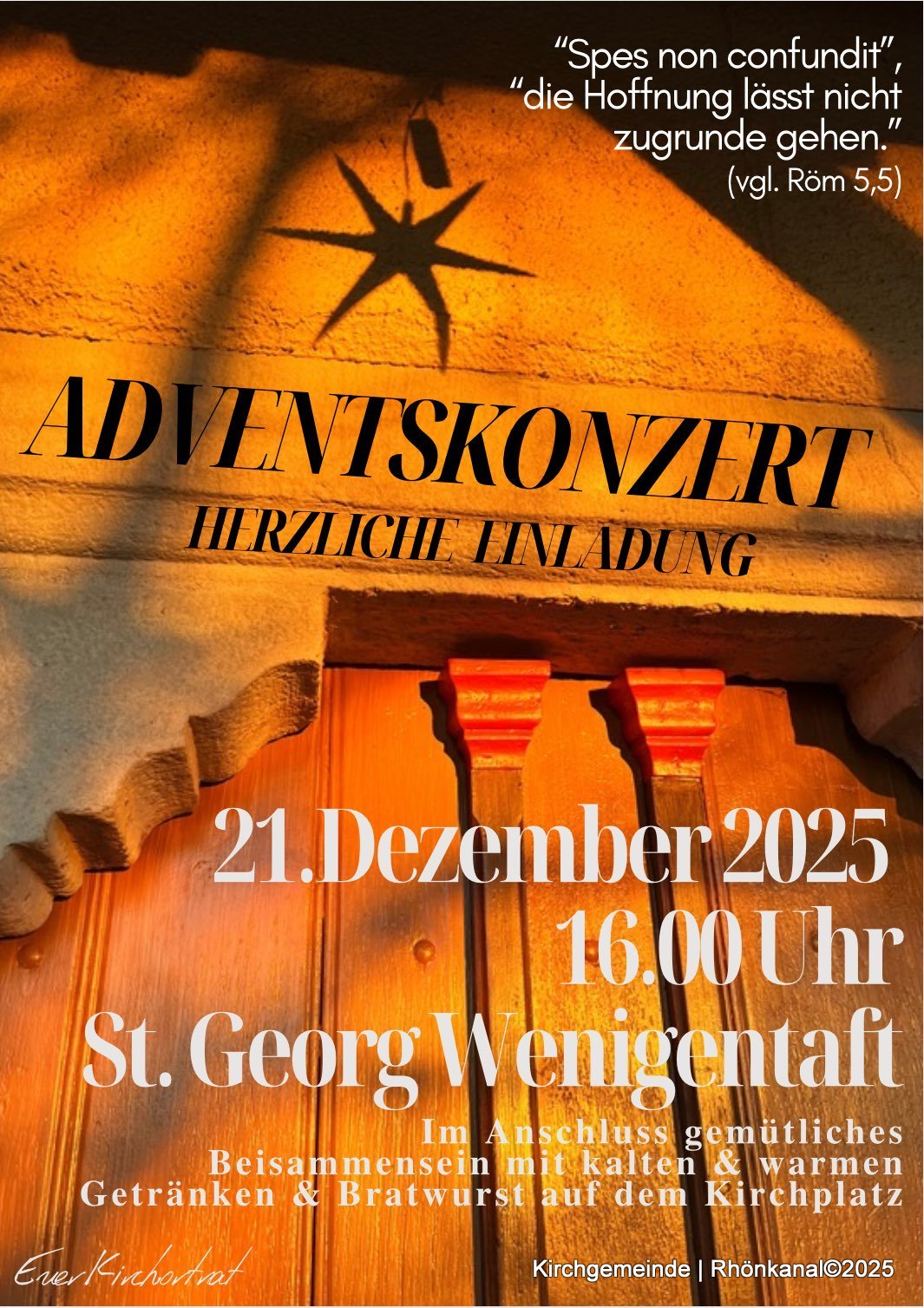 Am 4. Adventssonntag laden die Kirchengemeinden Buttlar und Wenigentaft um 16 Uhr zu einem Adventskonzert mit dem Thema „Die Hoffnung lässt nicht zugrunde gehen“ in die Kirche „St. Georg“ in Wenigentaft ein.