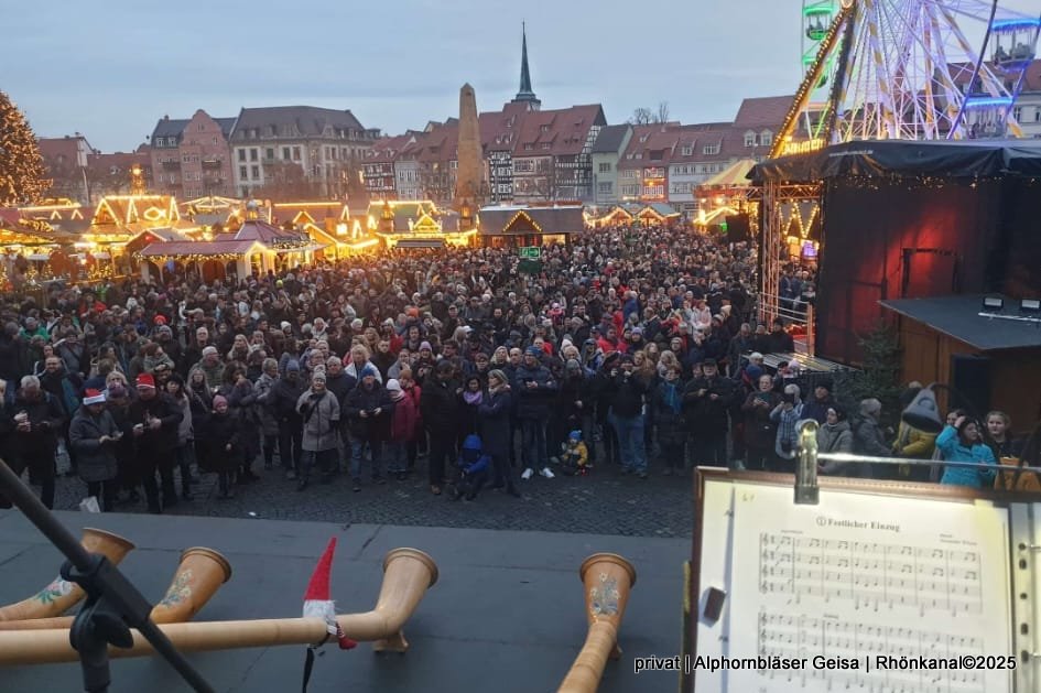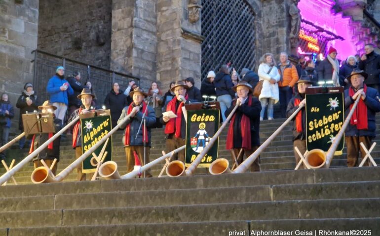 Die Geisaer Alphornbläser unter musikalischer Leitung von Bernd Hergert sorgten kürzlich auf den Domstufen in Erfurt für einen stimmungsvollen musikalischen Höhepunkt in der Adventszeit.