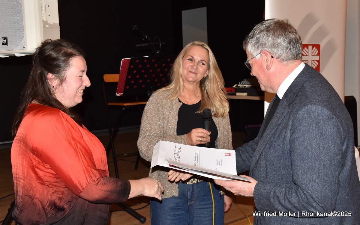 Alle Geehrten erhielten die Urkunde des deutschen Caritasverbandes mit Nadel und einen Blumenstrauß von Geschäftsführerin Susanne Saradj und dem Aufsichtsratsvorsitzenden Prälat Christof Steinert überreicht.