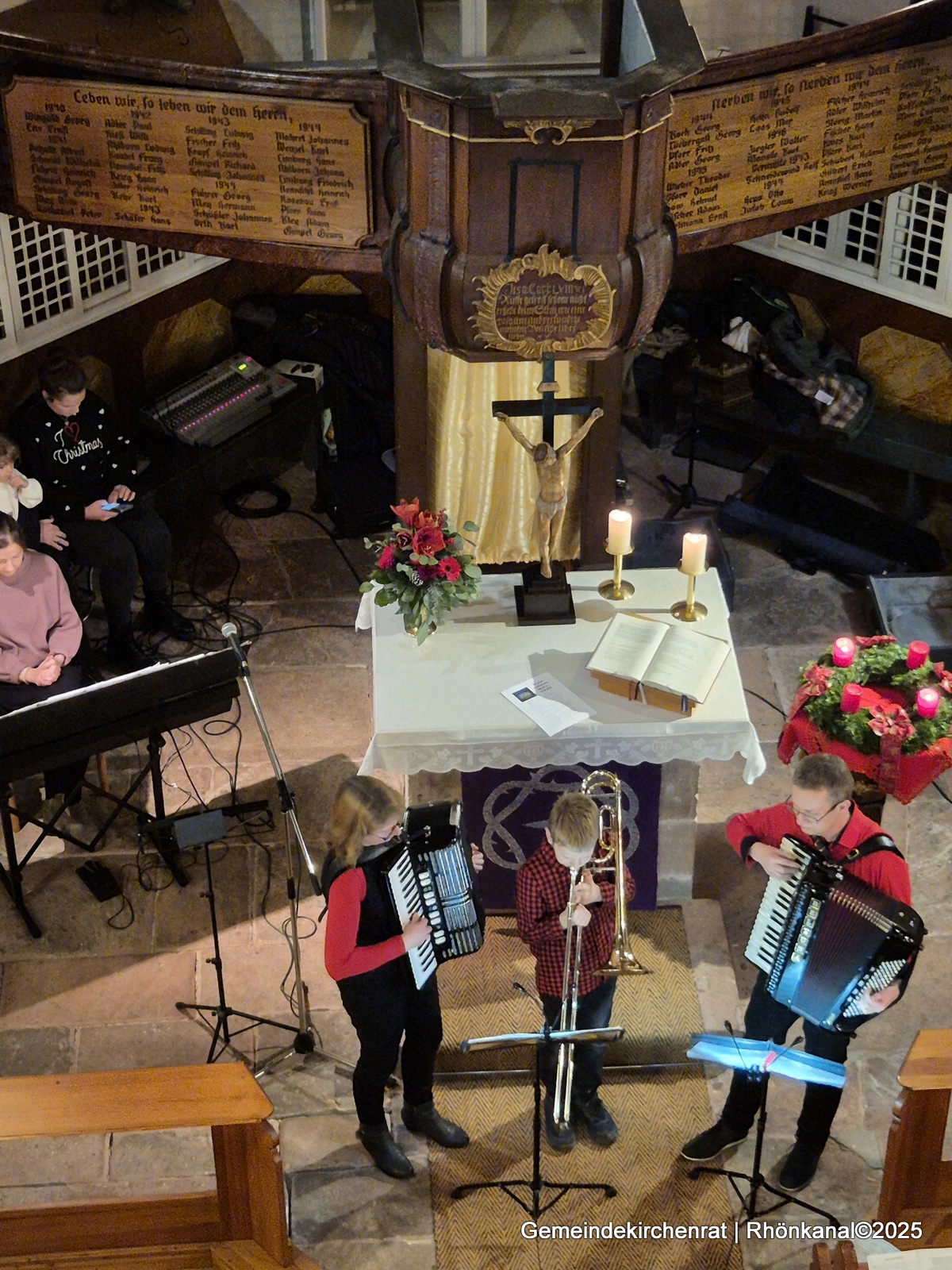 Zwischen den musikalischen Beiträgen wurden durch Gemeindeglieder besinnliche Gedanken ausgesprochen und mit Fürbitten an jene gedacht, denen es, wo auch immer, auf der Welt nicht so gut geht wie uns derzeit.