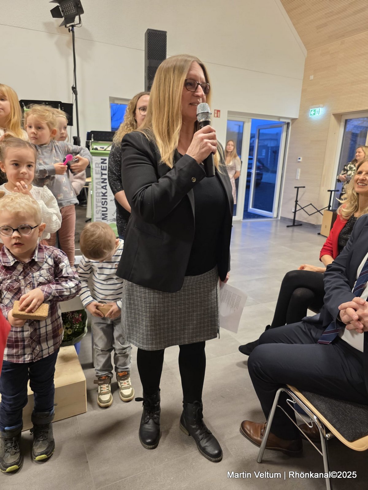 Nach einem musikalischen Auftakt der Kindergartenkinder unter Leitung von Tanja Lüer und Marie Schorr gab Bürgermeisterin Manuela Henkel (CDU) einen Rückblick auf das Bauvorhaben: von der privaten Stiftung des Grundstücks durch Pfarrer Hubert Brähler vor rund 15 Jahren über die ersten Ideen bis zur erfolgreichen Einwerbung von 1,3 Millionen Euro Fördermitteln der Dorferneuerung Anfang 2024.