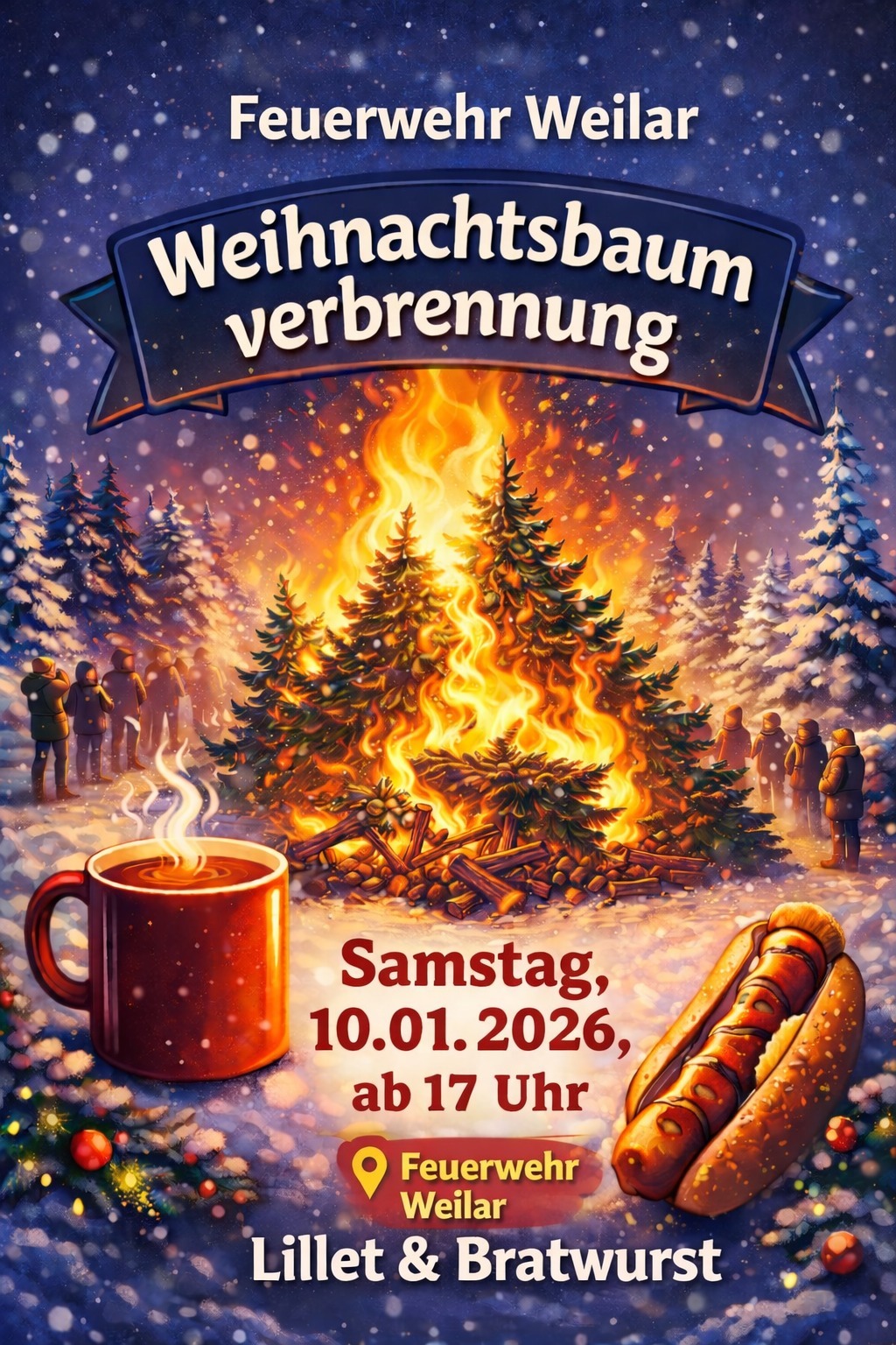 Das traditionelle Neujahrsfeuer in Weilar nimmt wieder Fahrt auf. Nach einer kurzen Zwangspause im letzten Jahr, werden am Samstag den 10.01.2026 ab 17 Uhr, die