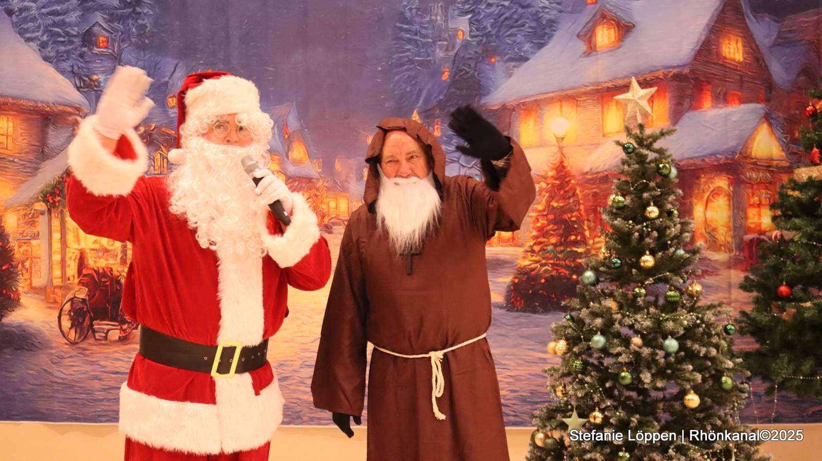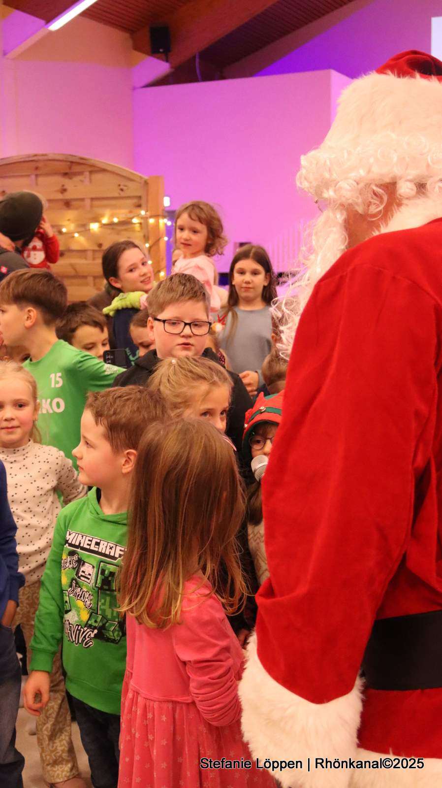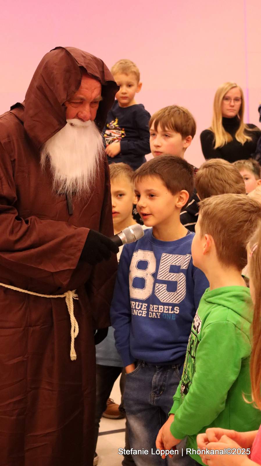 Gegen 18 Uhr wurde es dann still im Saal: Wie jedes Jahr zogen Nikolaus und Knecht Ruprecht in die Hochrhönhalle ein. Die beiden historischen Figuren – der heilige Nikolaus von Myra, seit Jahrhunderten als Schutzpatron der Kinder verehrt, und sein traditioneller Begleiter Ruprecht, der in alten Erzählungen mahnt, tadelt, aber meist doch ein Herz für die Kleinen hat – wurden sofort von neugierigen Blicken empfangen.
