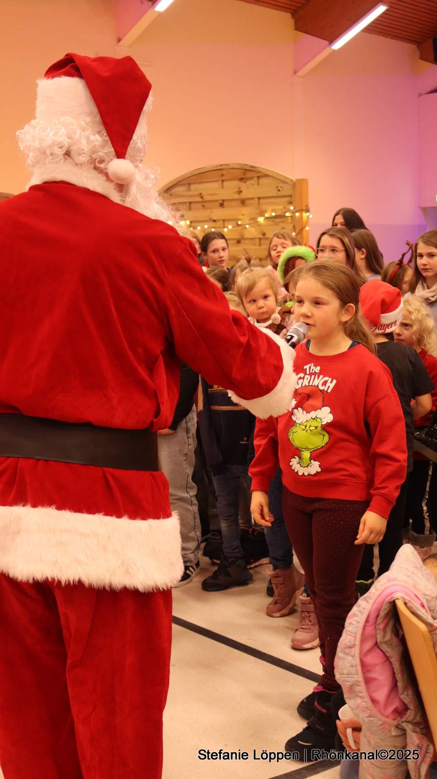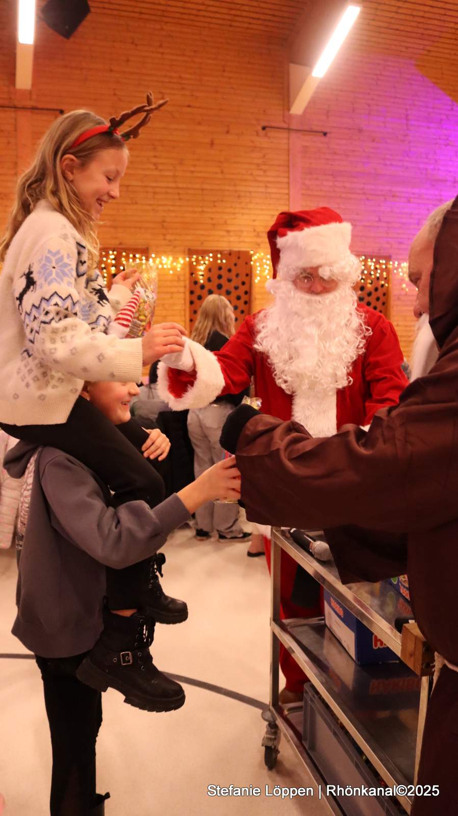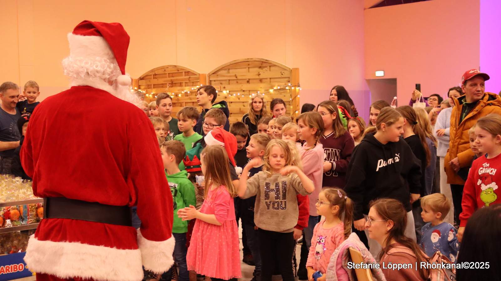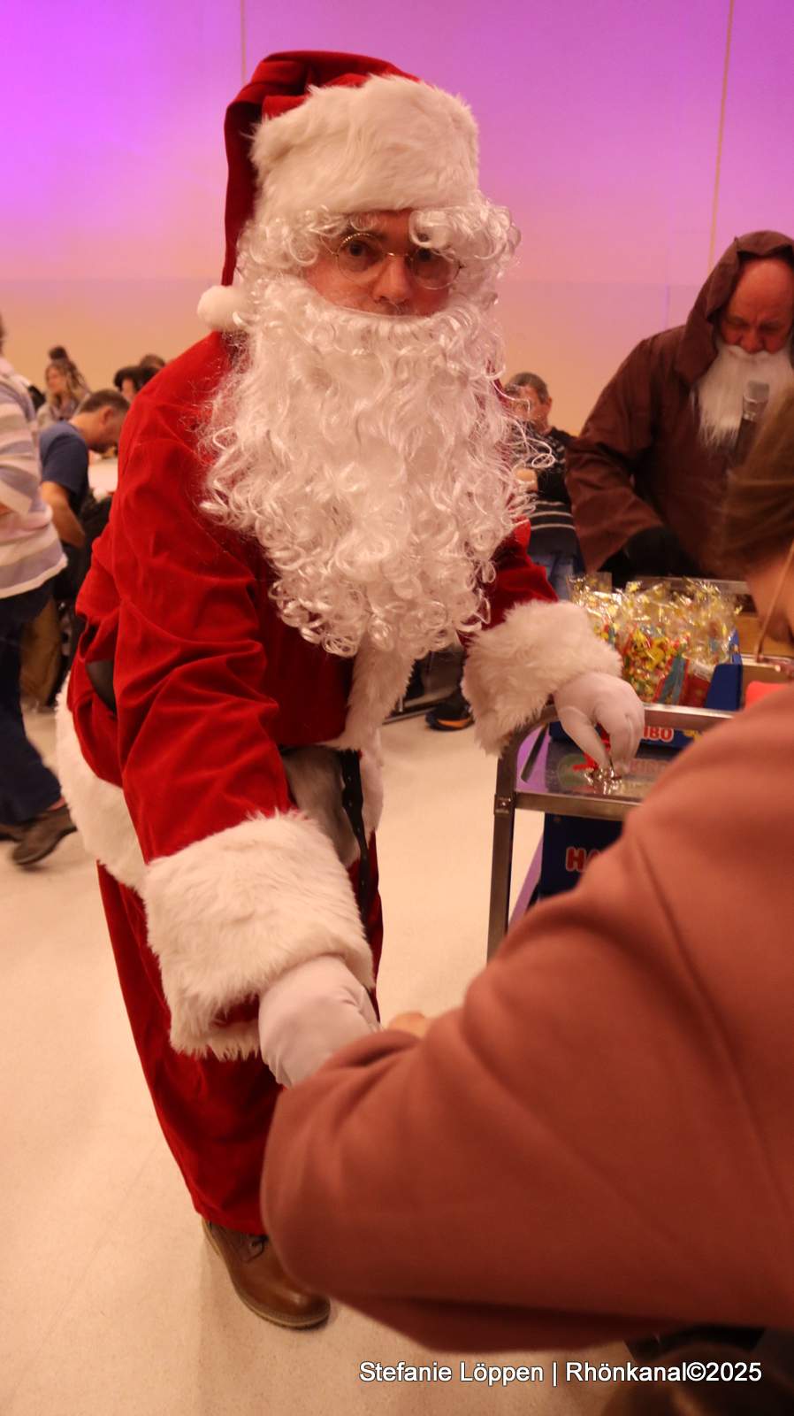 Gegen 18 Uhr wurde es dann still im Saal: Wie jedes Jahr zogen Nikolaus und Knecht Ruprecht in die Hochrhönhalle ein. Die beiden historischen Figuren – der heilige Nikolaus von Myra, seit Jahrhunderten als Schutzpatron der Kinder verehrt, und sein traditioneller Begleiter Ruprecht, der in alten Erzählungen mahnt, tadelt, aber meist doch ein Herz für die Kleinen hat – wurden sofort von neugierigen Blicken empfangen.