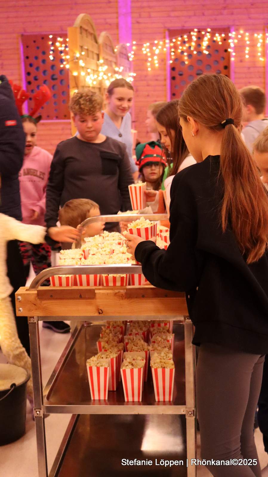 Bereits ab 16:30 Uhr startete der Nachmittag mit einer gemütlichen Kinderkino-Vorführung. Die kleinen Gäste machten es sich bei kostenlosem Popcorn bequem, das die Gemeinde spendiert hatte. Währenddessen nutzten viele Eltern die Gelegenheit, sich bei Glühwein, warmen Getränken sowie Bratwurst, Currywurst, Pommes und frisch gebackenen Waffeln zu stärken.