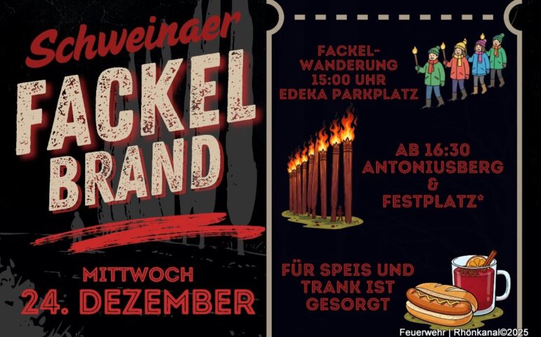 Der Freiwillige Feuerwehr Schweina e.V. lädt am 24. Dezember 2025 herzlich zum Fackelbrand ein. Der Fackelbrand zählt zum immaterielle Kulturerbe.