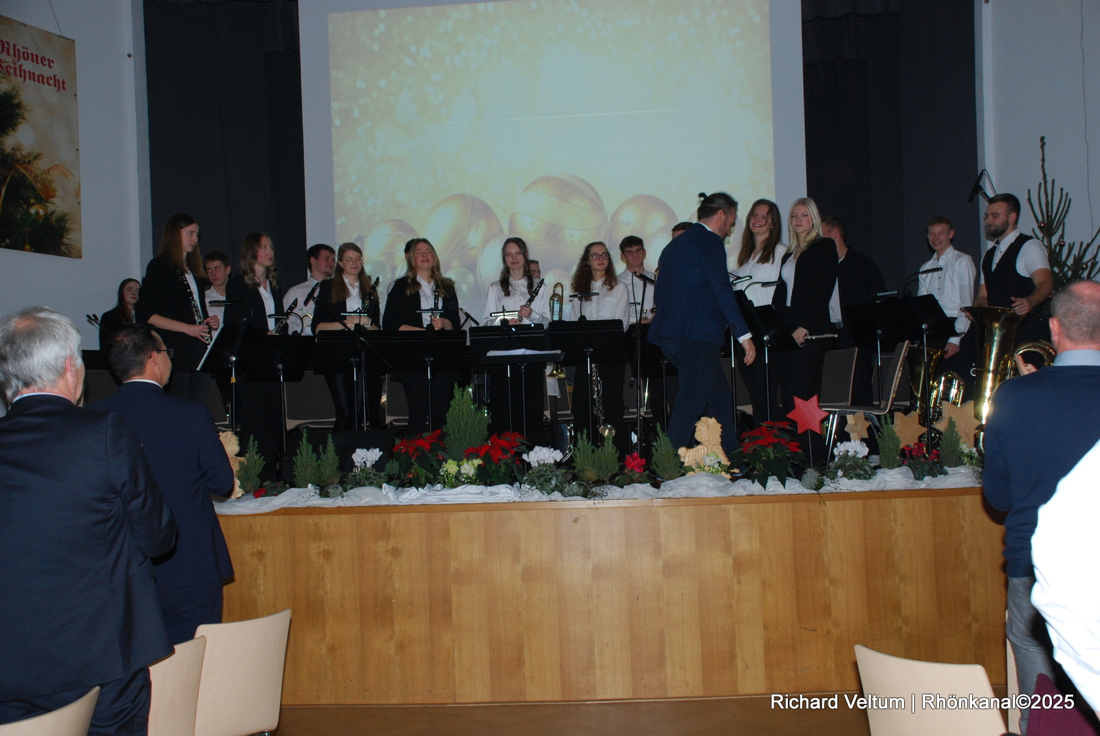 Zum finalen Höhepunkt spielte das Jugendblasorchester „Stille Nacht“ und lud zum gemeinsamen Singen von „O du fröhliche“ ein – ein berührender Moment der Gemeinschaft, der den Geist der Rhöner Weihnacht perfekt einfing.