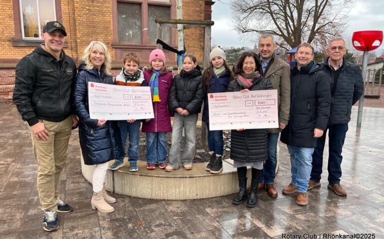 „Wir Rotarier haben beschlossen die Summe aufzurunden“, so Krätschmer. Und so konnten dem Förderverein der Burgseeschule 2.000 Euro und dem ambulanten Kinder- und Jugendhospizdienst Bad Salzungen/Rhön 4.000 Euro als Spende überreicht werden.