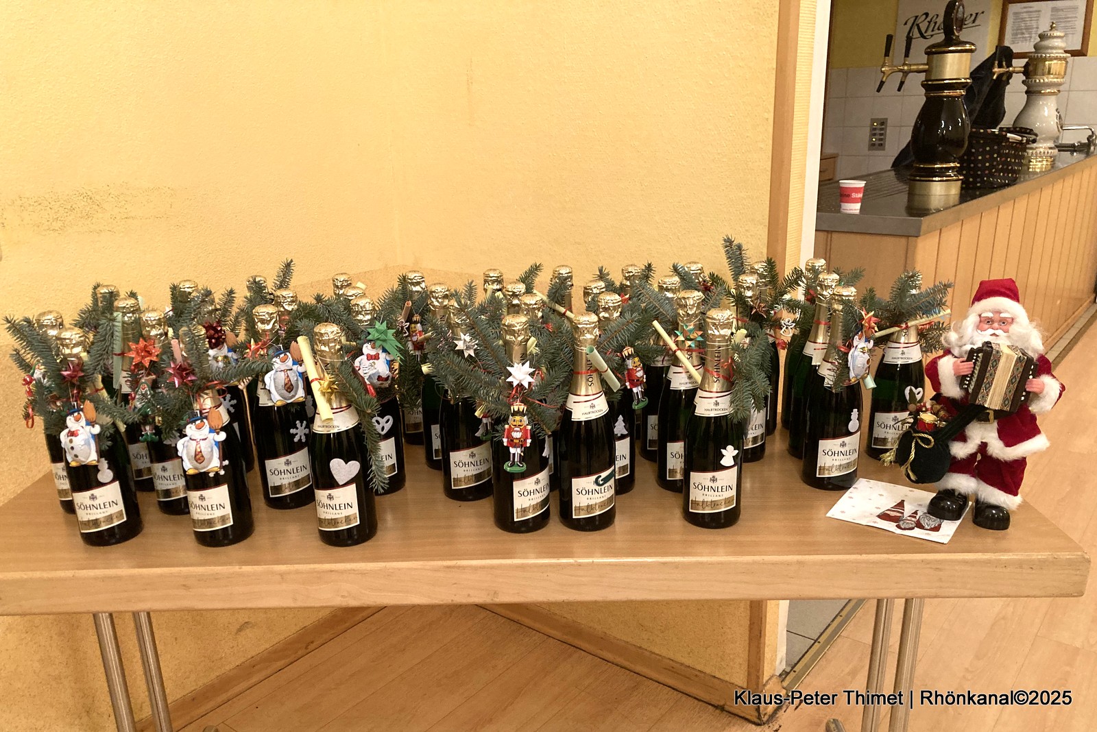 Nach der Spende am Freitag wurde zu einem kleinen Imbiss an einer weihnachtlich gedeckten Tafel eingeladen. Jedem Spender wurde mit einer Flasche Sekt, versehen mit einem Weihnachtsgedicht, gedankt.