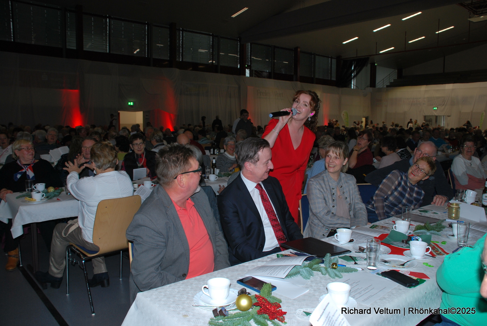 Sie animierte die Besucher und Gäste zum Mitsingen. Selbst der Bürgermeister Herr Bohl war sich nicht zu fein und sang gerne: „Schneeflöckchen Weissröckchen“ gemeinsam mit dem Publikum.